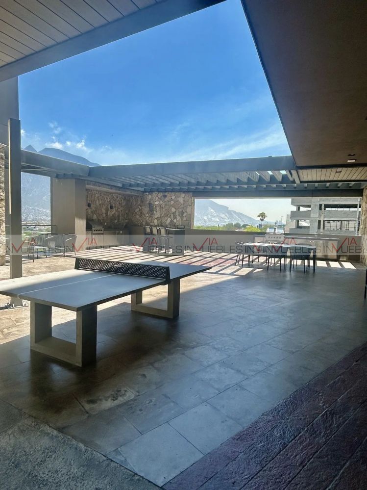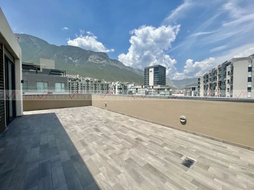 The Penthouse is in the process of being equipped. Id Gvia: 118762Lujoso PH en Torre Amatis, listo para estrenar con hermosas vistas panorámicas a la Huasteca. Cuenta con 239.29 m2 de los cuales 137.48 son de Interiores y 101.81 de espectacular terraza, además de 2 recamaras la principal con walking closet y cada una con su baño completo, cuarto de servicio también con baño completo, lavandería y 3 cajones de estacionamiento.
