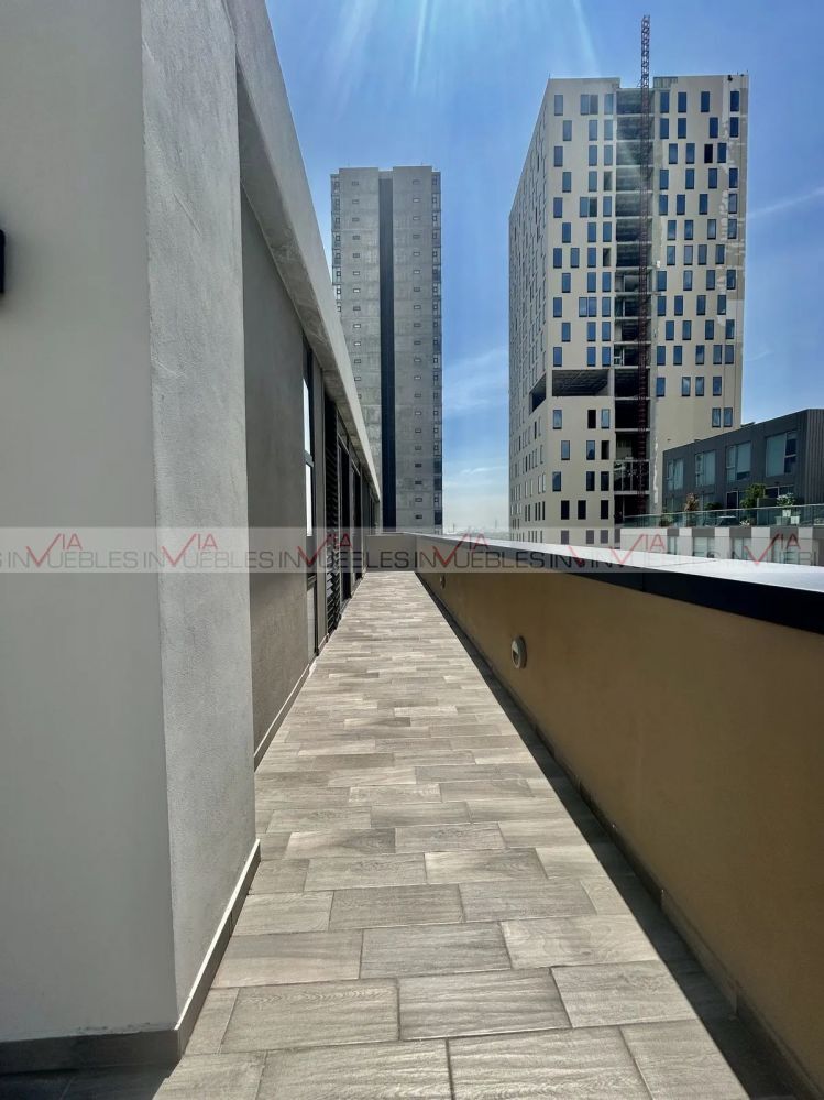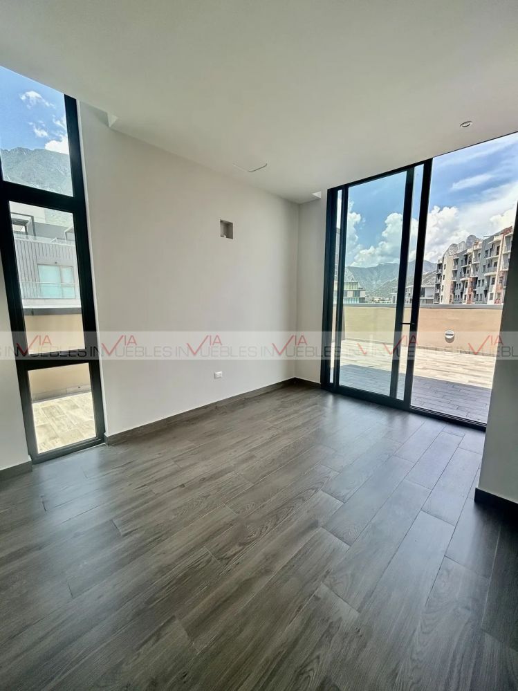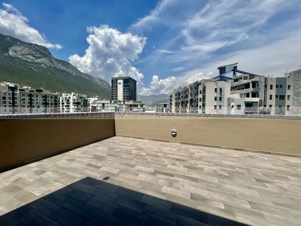 The Penthouse is in the process of being equipped. Id Gvia: 118762Lujoso PH en Torre Amatis, listo para estrenar con hermosas vistas panorámicas a la Huasteca. Cuenta con 239.29 m2 de los cuales 137.48 son de Interiores y 101.81 de espectacular terraza, además de 2 recamaras la principal con walking closet y cada una con su baño completo, cuarto de servicio también con baño completo, lavandería y 3 cajones de estacionamiento.
