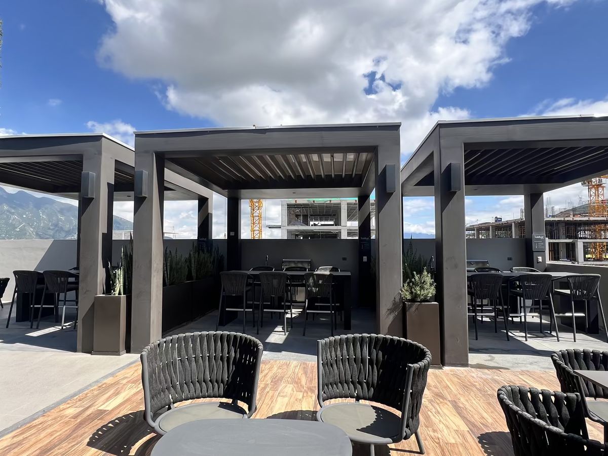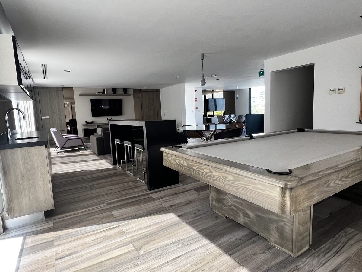 La torre cuenta con amenidades como alberca, 3 asadores en una agradable terraza, y salón de juegos con salas, barra, mensa de billar.