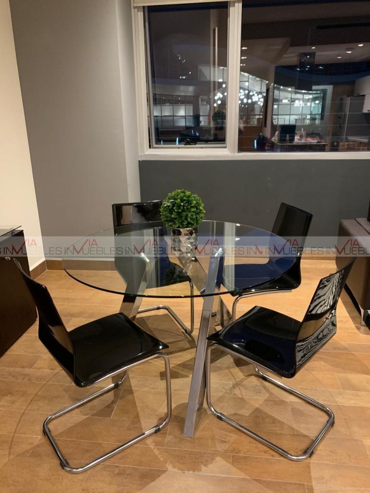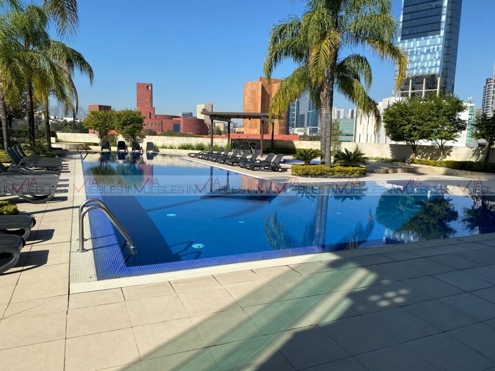 The complex has various amenities such as a pool, gym, coworking area, among others, don't miss this opportunity, make your appointment right now! Id Gvia: 118688Bonito departamento totalmente amueblado y equipado, se encuentra ubicado en exclusiva zona en San Pedro, con accesos fáciles a vías importantes, cuenta con su cocina integral, sala comedor, con medio baño para el área social, una recamara con su baño completo, tiene 2 climas centrales seccionados. Su renta ya incluye el mantenimiento.
