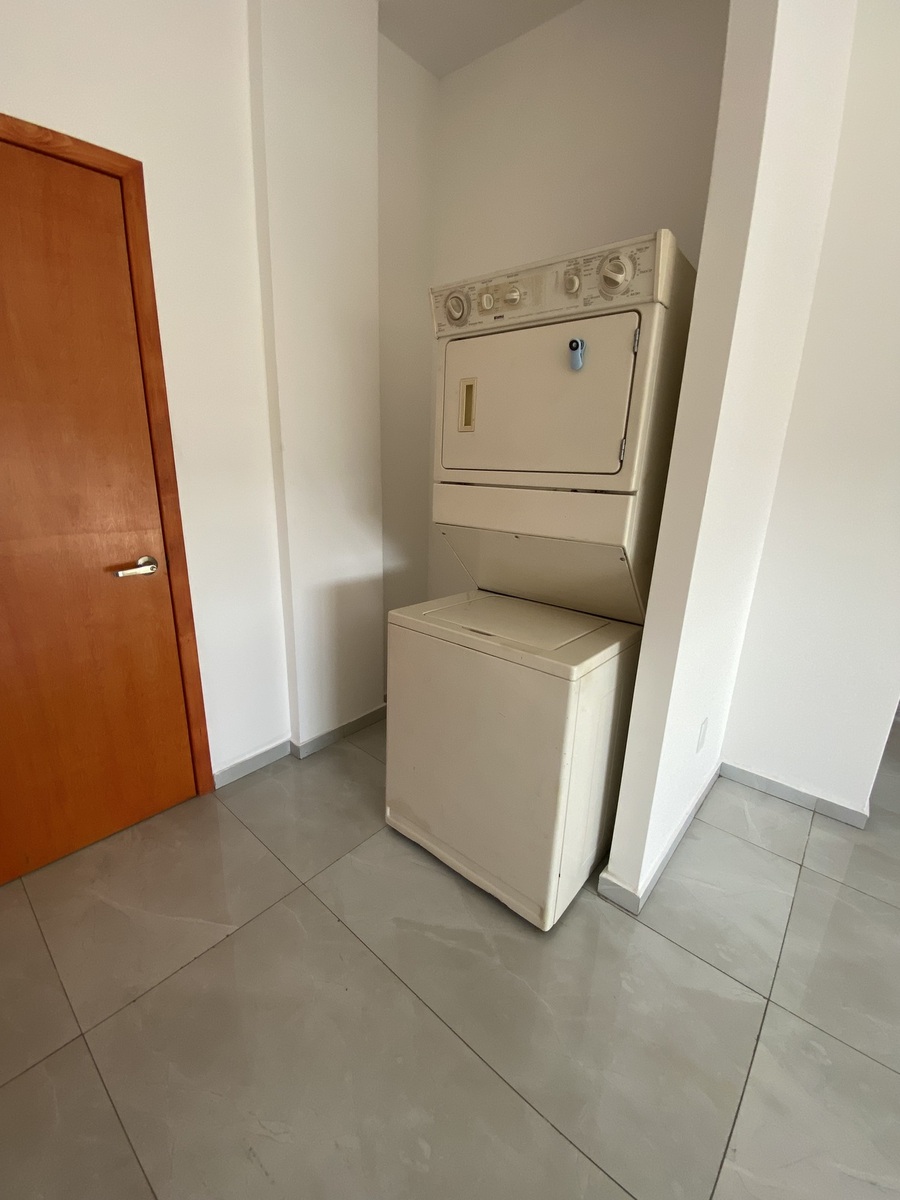 Equipado con lavadora , secadora, estufa y refrigerador .