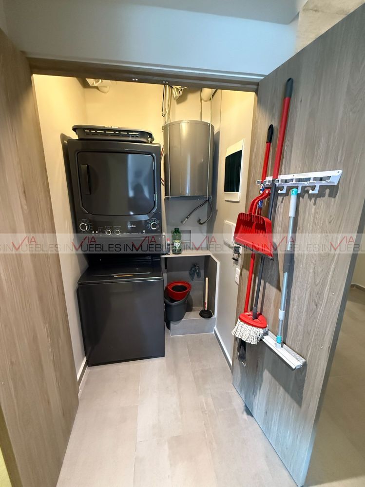 Tower One has various amenities such as a pool, gym, sky bar, grills, sports bar, coworking space, private event rooms, and 24/7 security. Id Gvia: 118878Hermoso departamento ubicado en el corazón de Mty., a unos pasos de Paseo Santa Lucia y Fundidora. Totalmente equipado y amueblado.