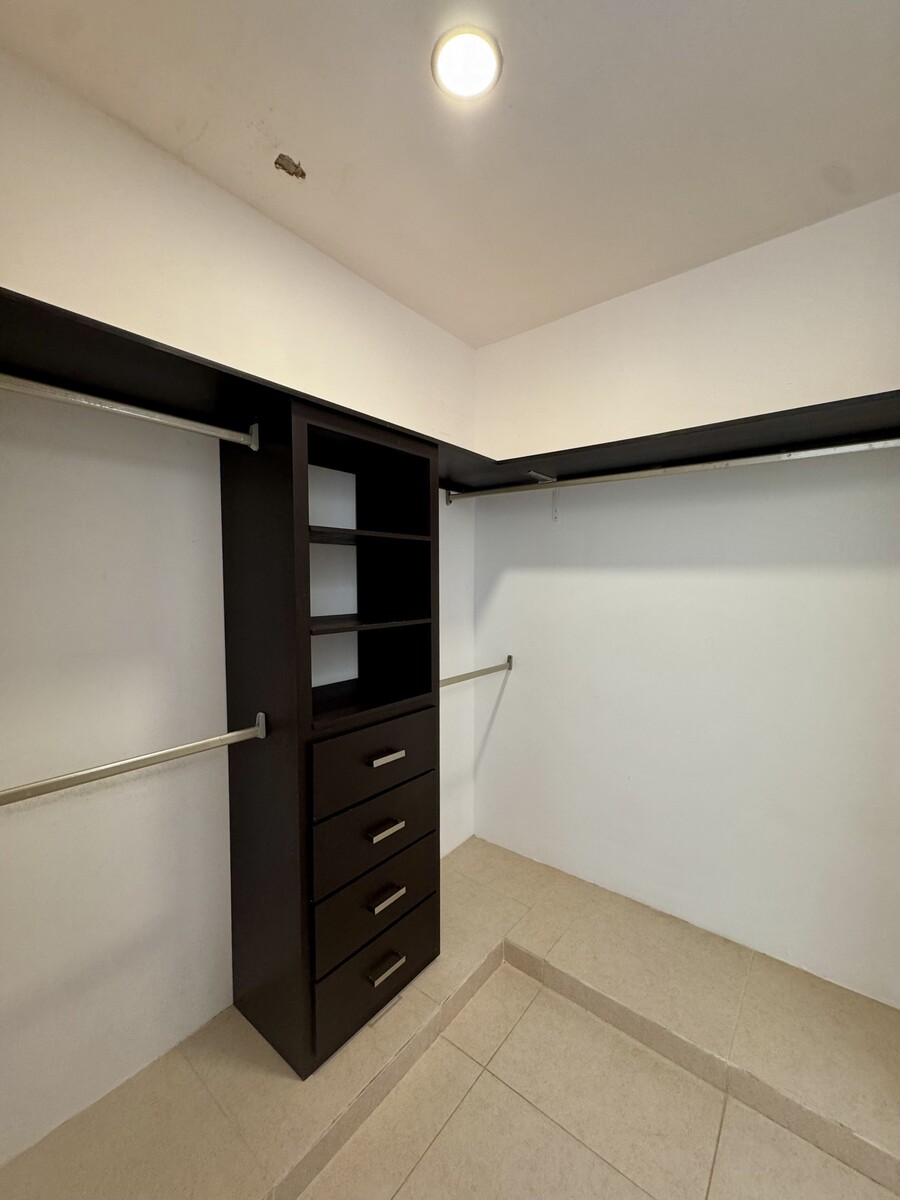 Main bedroom with walk-in closet, bathroom, and balcony.