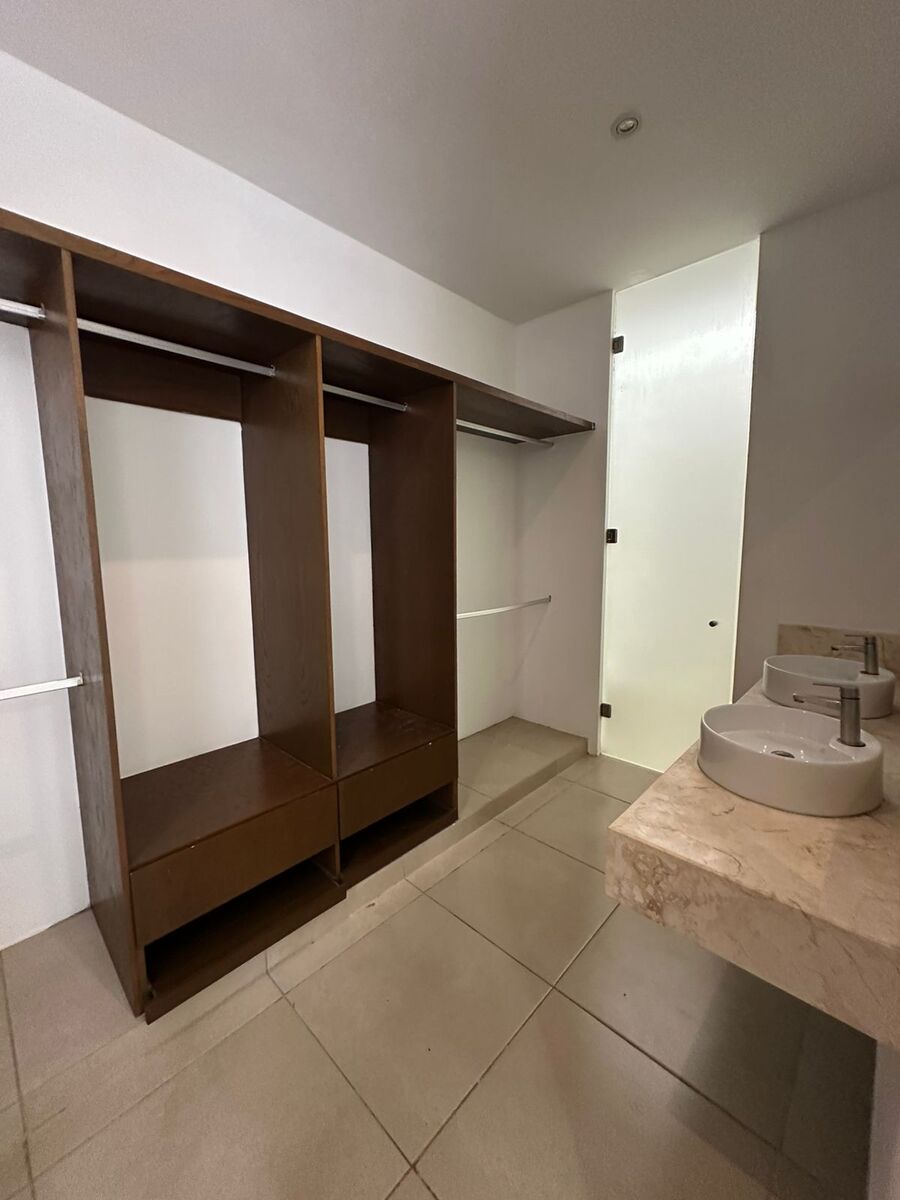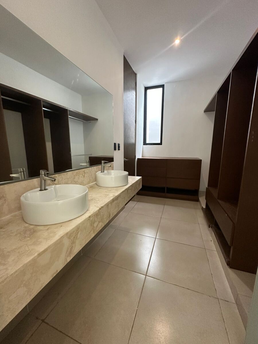 Recámara principal con clóset vestidor y baño completo con doble lavabo