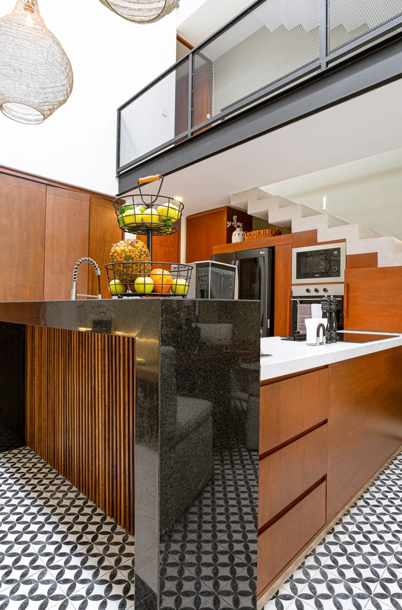 • Cocina integral revestida en madera con amplia alacena