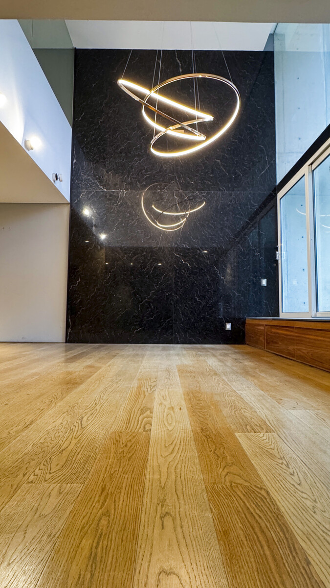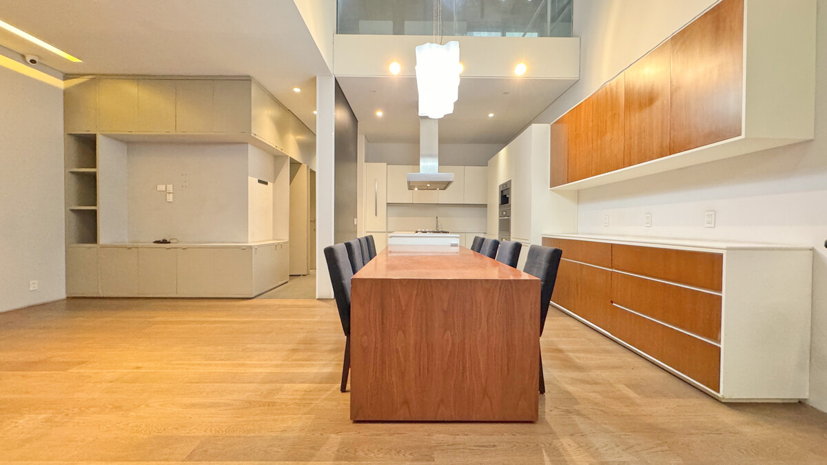 En el primer nivel, destaca su elegante cocina abierta equipada con electrodomésticos Miele, amplia alacena y excelente capacidad de almacenamiento. El área social ofrece comedor y sala con terraza, además de una sala de televisión de doble altura, recibidor con triple altura, dos terrazas adicionales y medio baño de visitas, creando un entorno sofisticado y funcional.