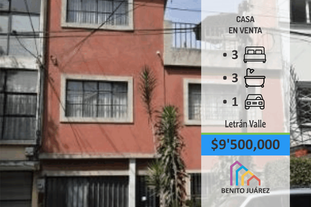 Townhouse for sale with three levels + terrace in the Del Valle neighborhood.