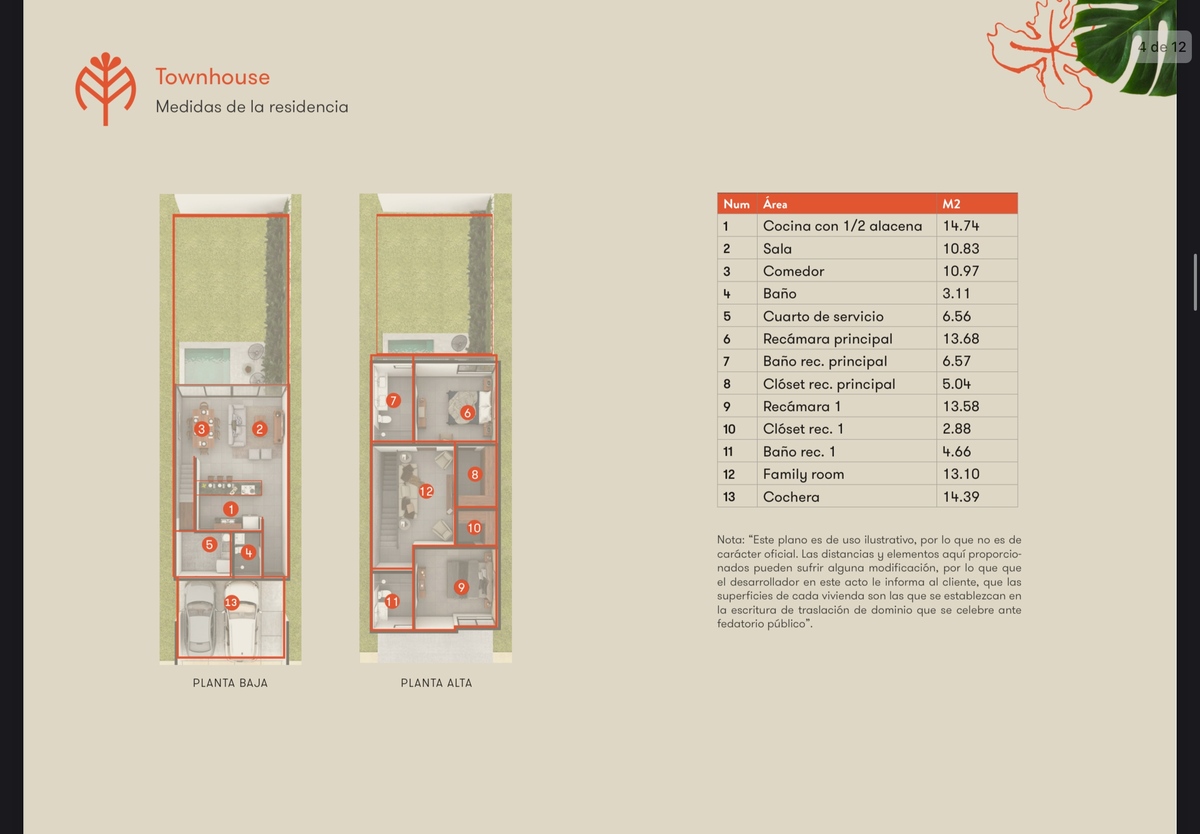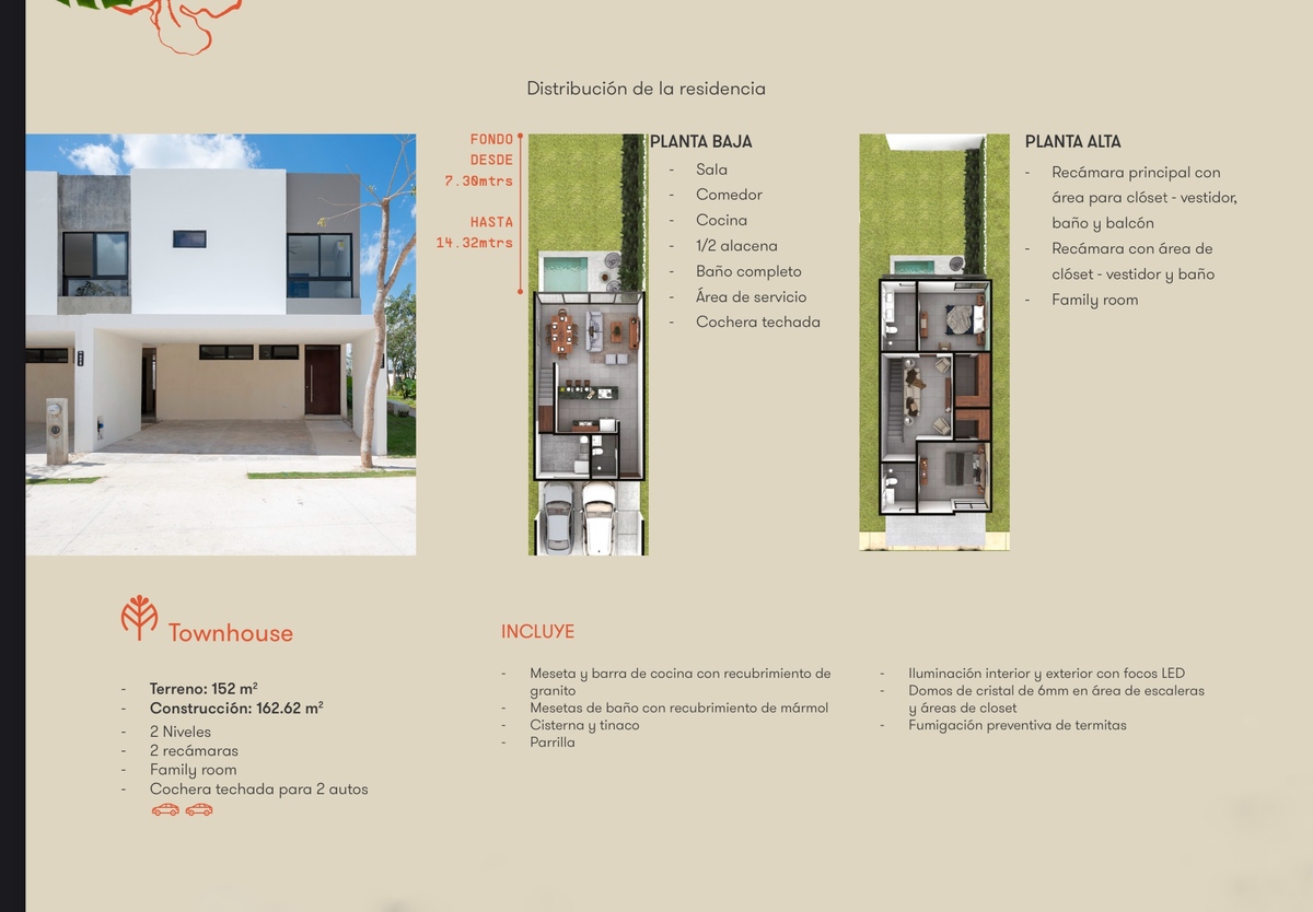 • Planta alta: recámara principal con clóset-vestidor, baño y balcón; recámara secundaria con clóset y baño propio; además de un family room acogedor.