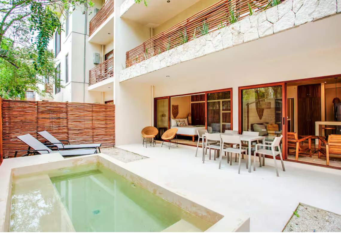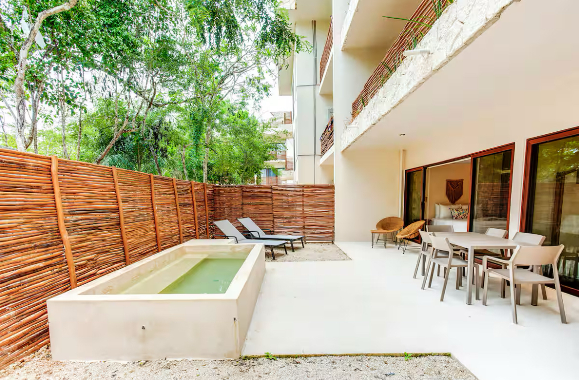 Beautiful apartment fully furnished and equipped to enjoy the mystical Tulum or to rent for vacation. Experience this wonderful residential area in the mystical jungle of Tulum with all the comfort you could never imagine in the jungle. Cozy Garden completely equipped, with two bedrooms and two bathrooms. (one with a Lock off system with bathroom) Spacious social area with integrated kitchen. On your private terrace with jacuzzi, you can enjoy moments of relaxation. The development has 2 natural Cenotes to add a touch of adventure. In addition to complete amenities, restaurant-bar-cafe. Coworking area, gym, trails, two pools, children's games, and convenience store. Enjoy this oasis just 5 min from the center, 15 min from the hotel zone, and 10 min from the Tulum ruins. Special rate agreements for residents of Selva Norte, with exclusive Beach Clubs.