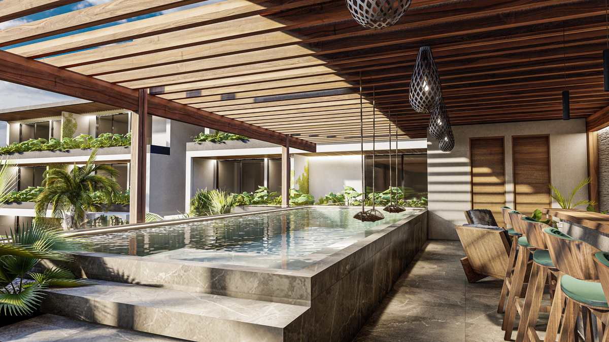 Incredible apartment opportunity of 1 or 2 bedrooms located in Tulum, it has a spectacular view of the Tulum pyramids (the only development currently) in addition to all its premium amenities, it has a pool on the ground floor, bar, lobby, 24/7 security, SPA, co-working area, Sky pool, GYM.Un desarrollo de 43 departamentos, con una vista inigualable en Tulum, y amenidades exclusivas dentro y fuera del desarrollo. Mirador cuenta con una ubicación privilegiada en Tulum, una vista espectacular a la zona arqueológica, y a un costado de la mejor biósfera natural de todo México y Centroamérica. El proyecto está ubicado estratégicamente en una de las zonas con mayor plusvalía de Tulum, a unos minutos de la zona arqueológica más visitada en Quintana Roo. Con una privilegiada conectividad a servicios en la mejor zona de turismo sustentable del país, también te permite visitar otras ciudades por su cercanía a las vialidades principales.
