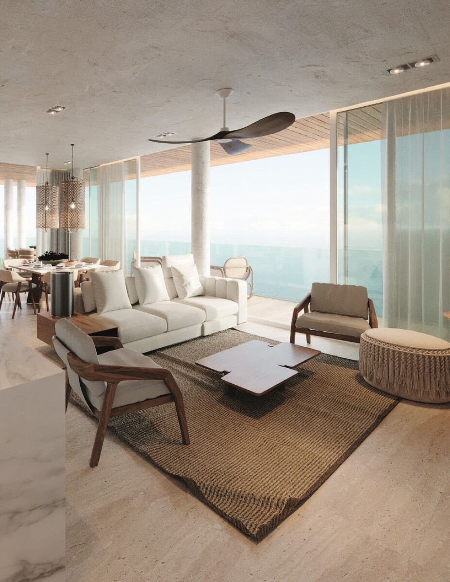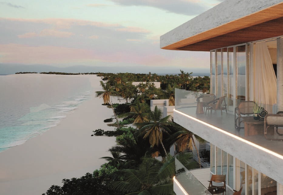 20 metros lineales en cada piso permiten ampliar el horizonte para lograr una perspectiva exclusiva y poco vista del mar yucateco.