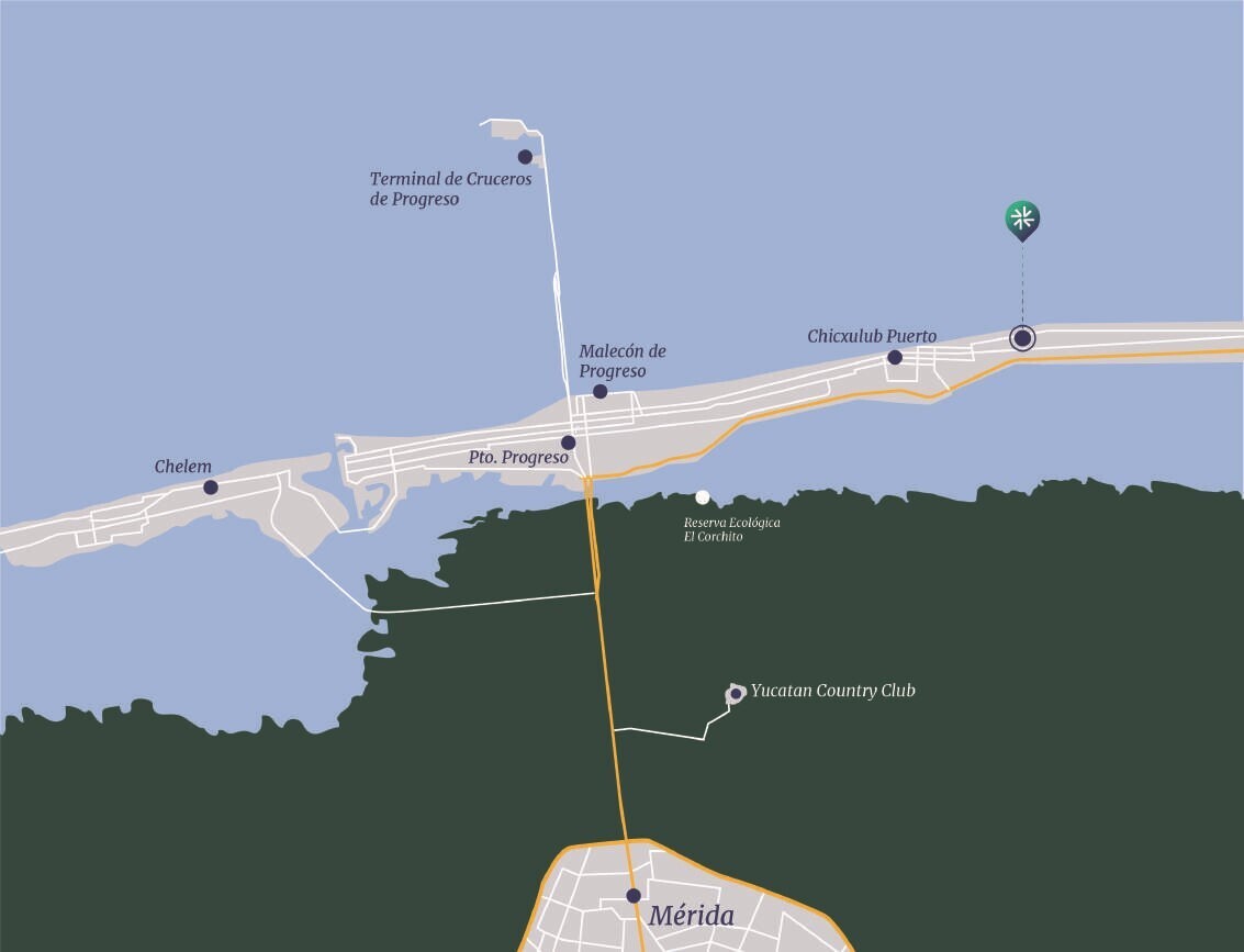 Northern está situado frente al mar de Chicxulub Puerto, un lugar privilegiado, a 30 km de Mérida, el corazón del Sur de México y una de las ciudades de mayor plusvalía y mayor oferta de servicios comerciales.