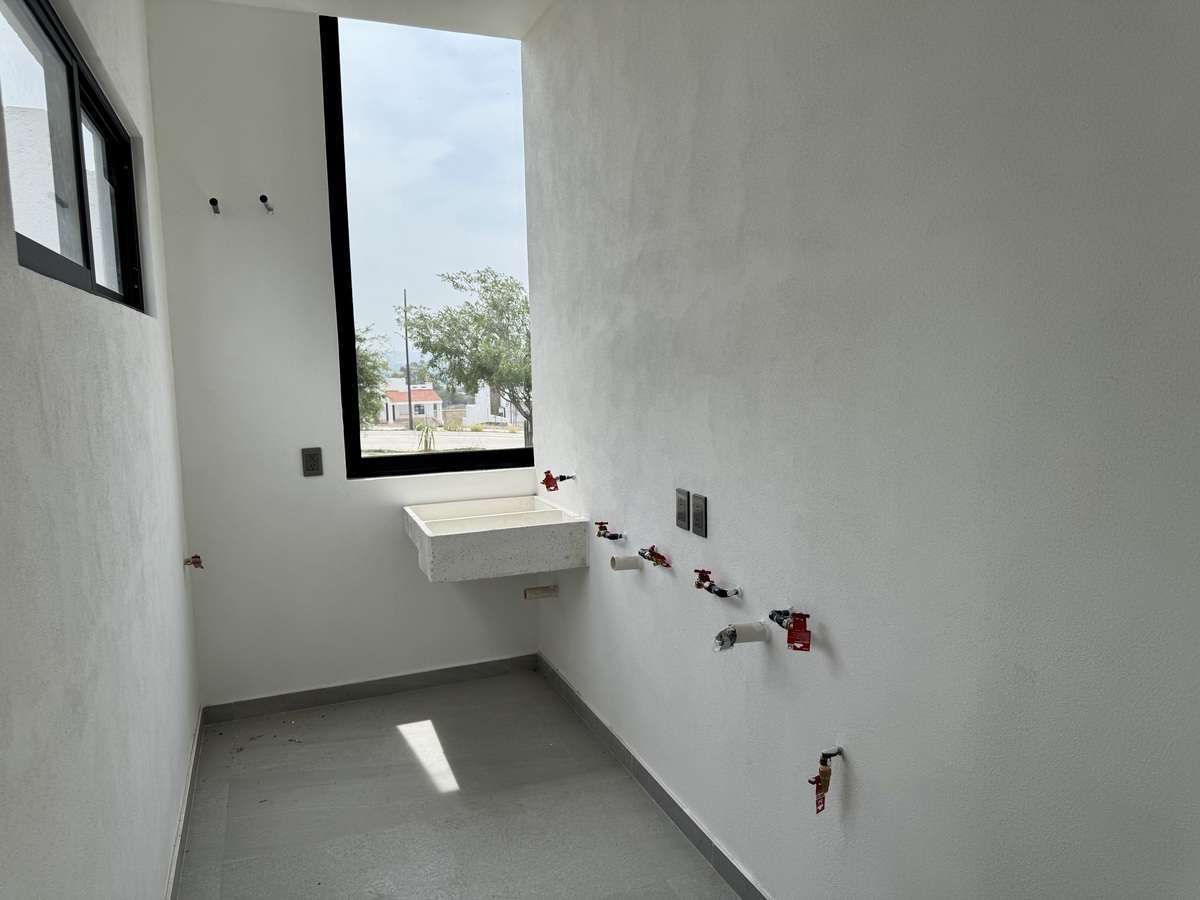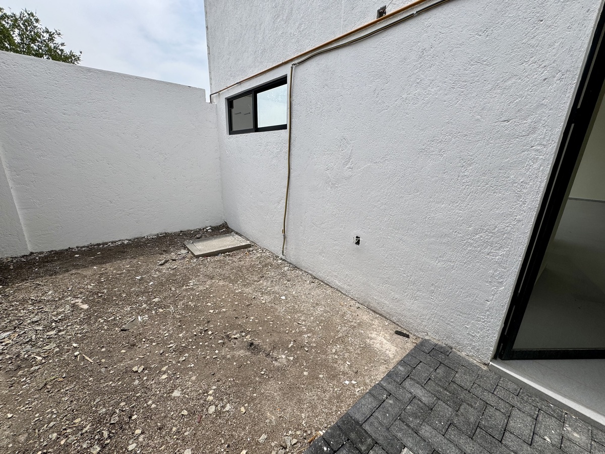 Planta baja: 1/2 baño, habitación con closet y baño, sala- comedor a doble altura, cocina con cubierta de granito y alacena, terraza, cuarto de lavado, pequeño jardín, cisterna