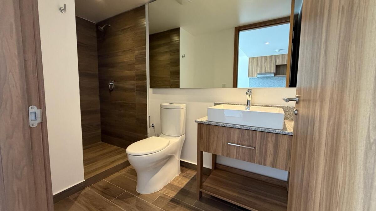 Research expenses and legal policy are NOT included in the rental cost, as well as the furniture, appliances, and art shown in the photographs.Loft de 48 m² en desarrollo UP Santa Fe, con diseño abierto que incorpora sala, comedor, área de recámara, cocina integral con barra, baño completo, vestidor y área de lavado. Vista a Santa Fe.