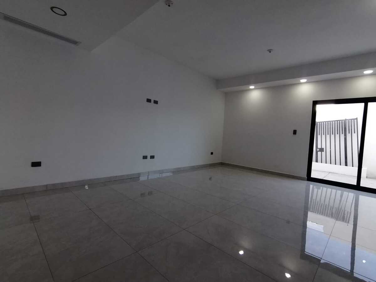 Sala, comedor, recibidor, cocina integral, lavandería, medio baño, cochera techada 2 autos, pasillo de servicio y patio.