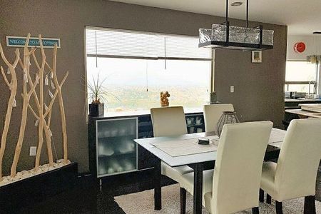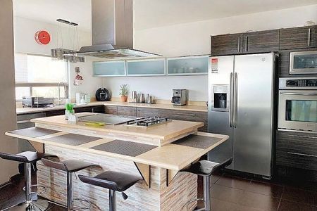 You go up 4 steps and there is the entrance hall, half bathroom, guest closet, very spacious living room, bright dining room with access to a pleasant terrace, equipped kitchen, spacious service room with bathroom, backyard garden of 300m², palapa access with grill, side access, laundry room with facilities.
