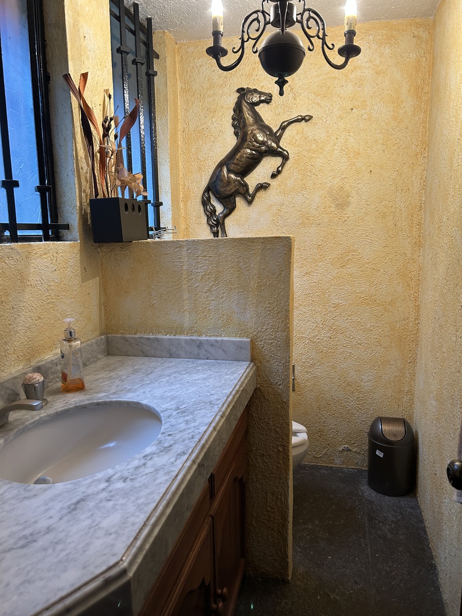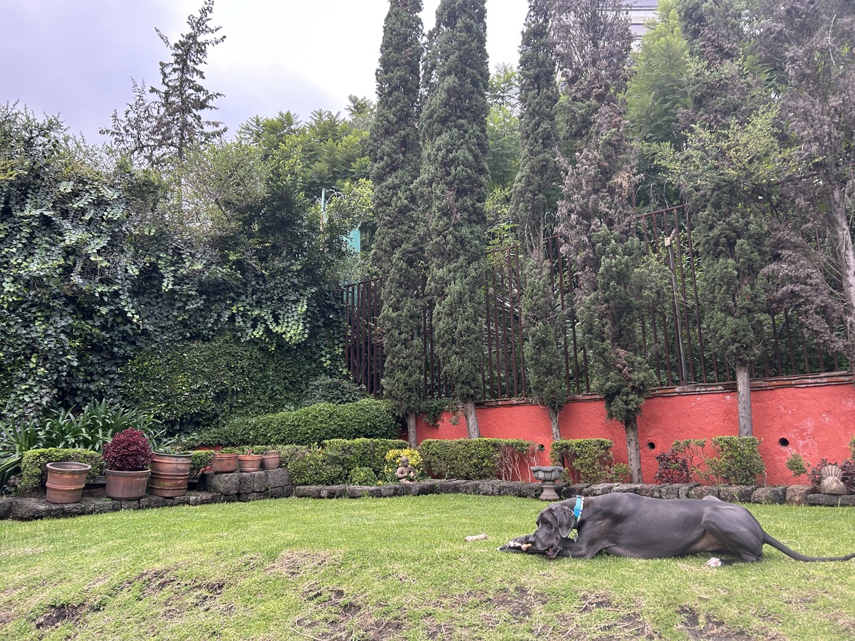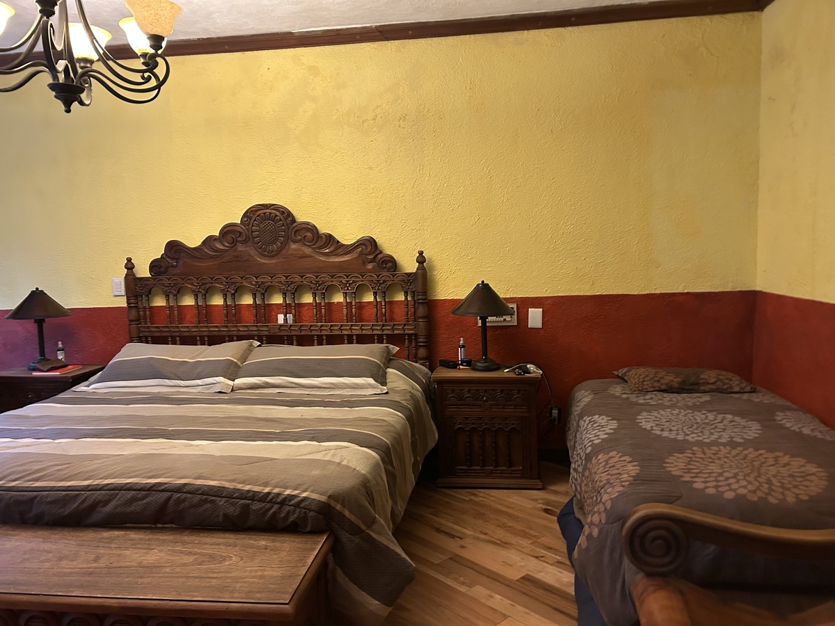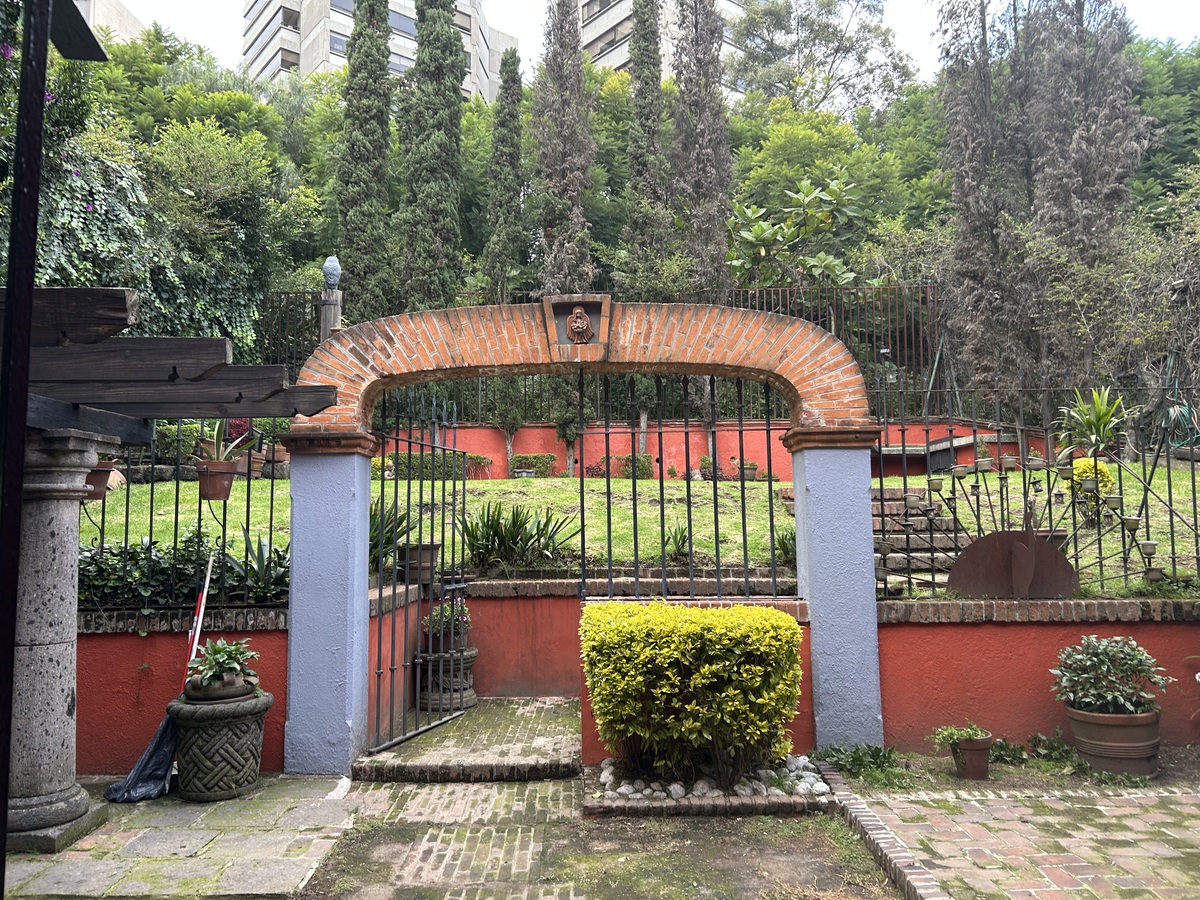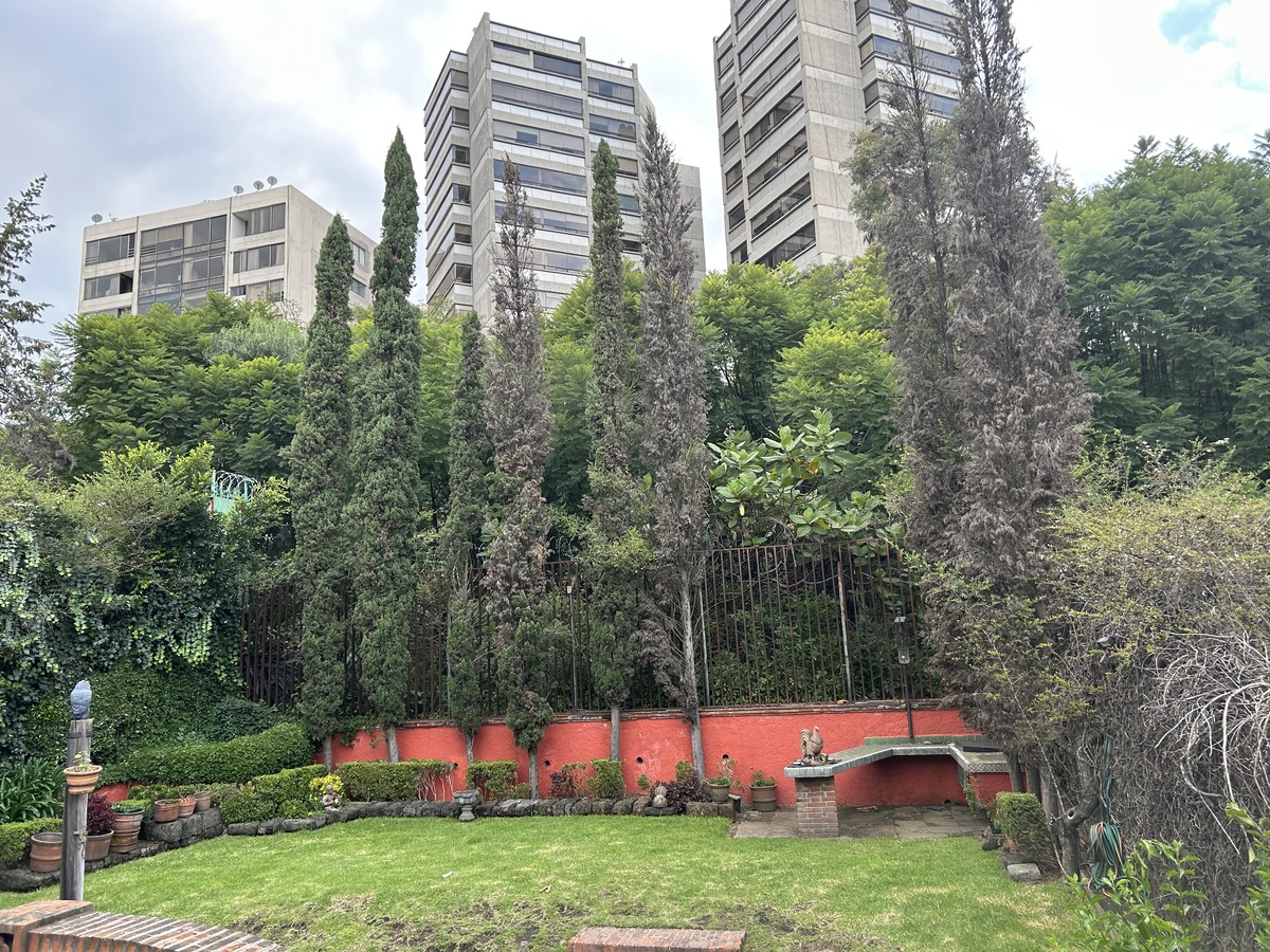 Una habitación de visitas con baño completo, capilla, bar, cuarto de TV, biblioteca, baño de visitas y acceso a patio interior y amplio jardín más 104 m2 de área federal en superficie plana.