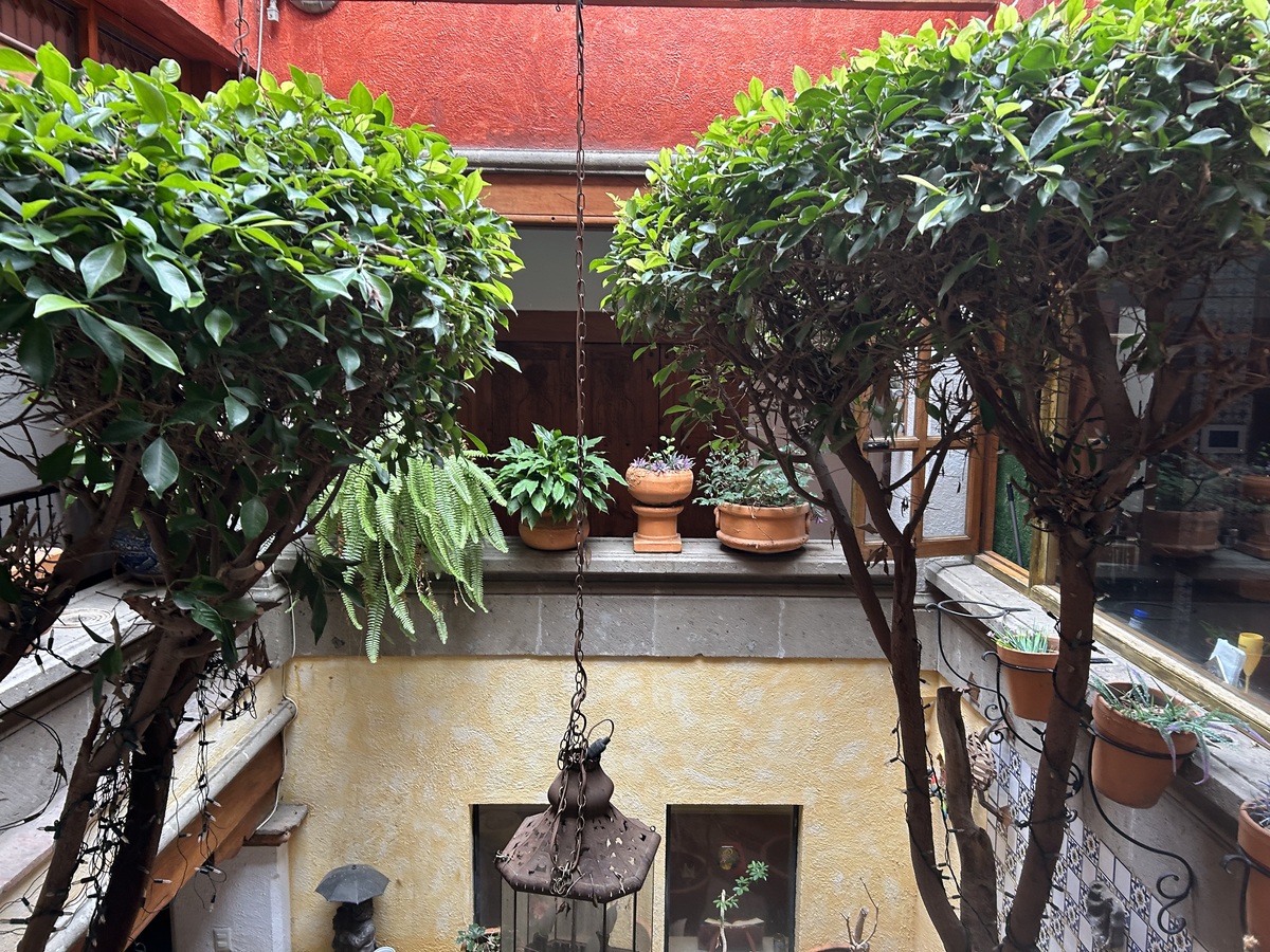 Consta de salón de lectura, sala con chimenea, comedor con balcón, cocina con alacena, antecomedor con balcón, recámara 2 y 3 con baño completo cada una y acceso al patio interior.