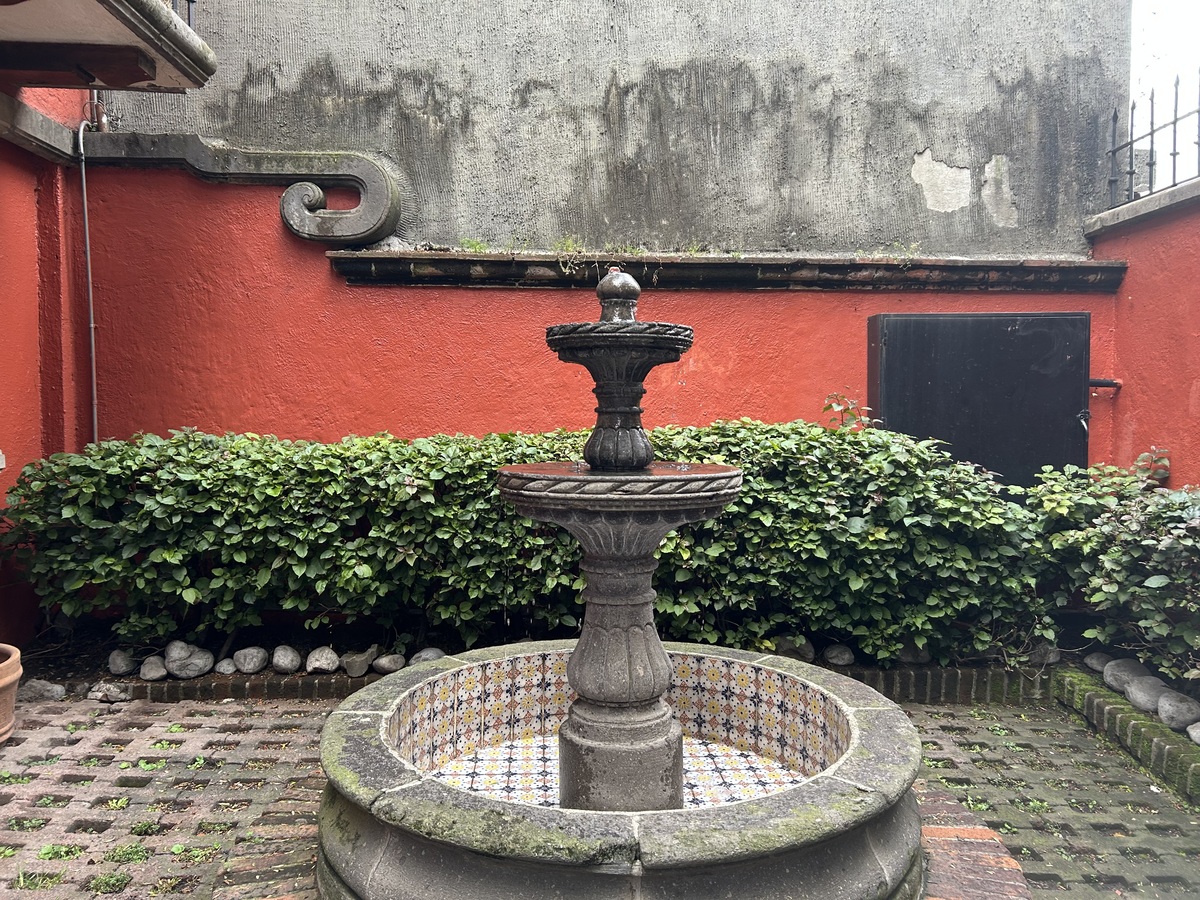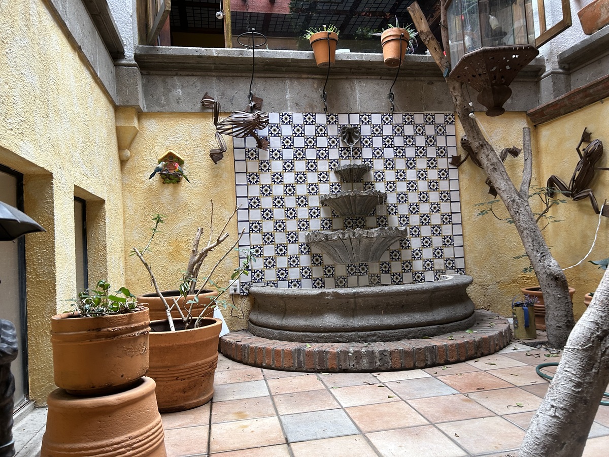 La planta baja consta de estacionamiento para 3 autos y patio con fuente.