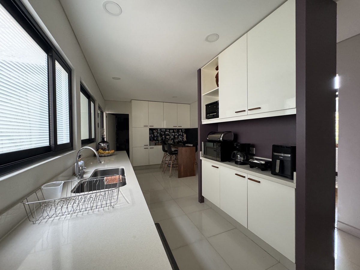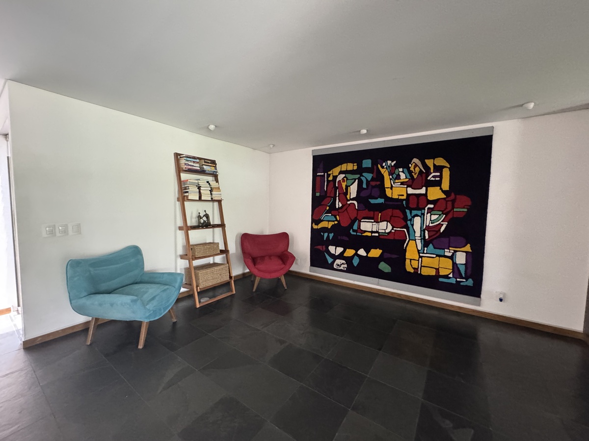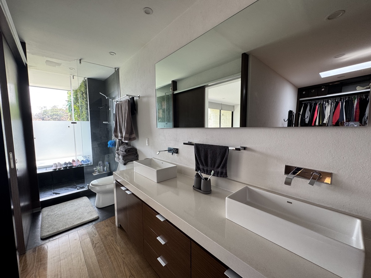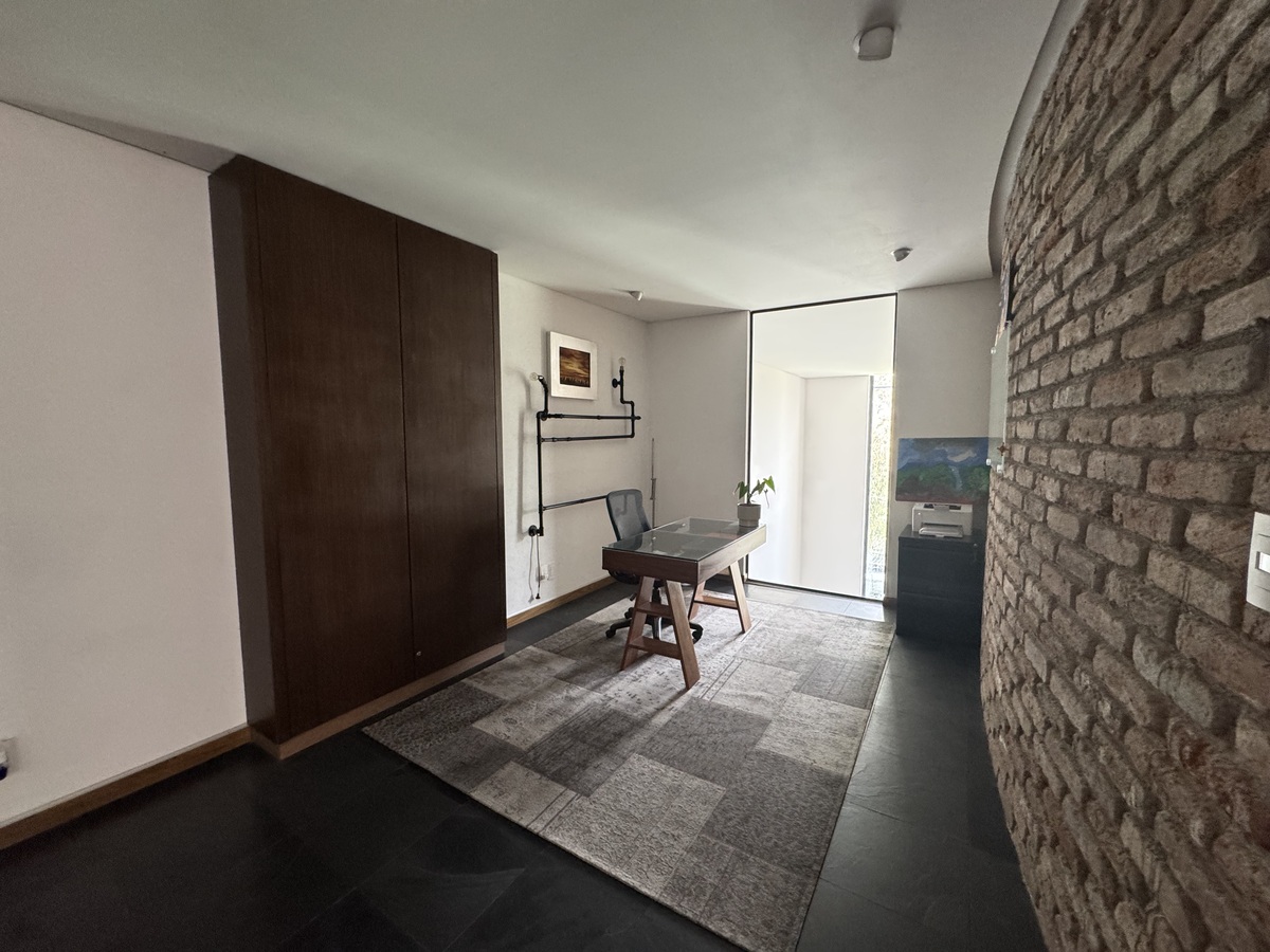 Hermosa casa en venta colindando al campo de golf de 9 hoyos. Cuenta con tres recámaras, sala, comedor, cocina, family, estudio, cuarto de juegos, bar, lavandería, cuarto y baño de servicio.