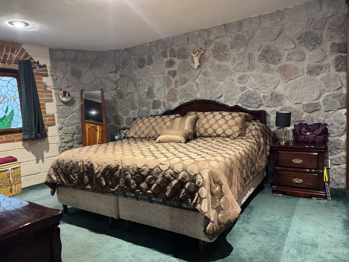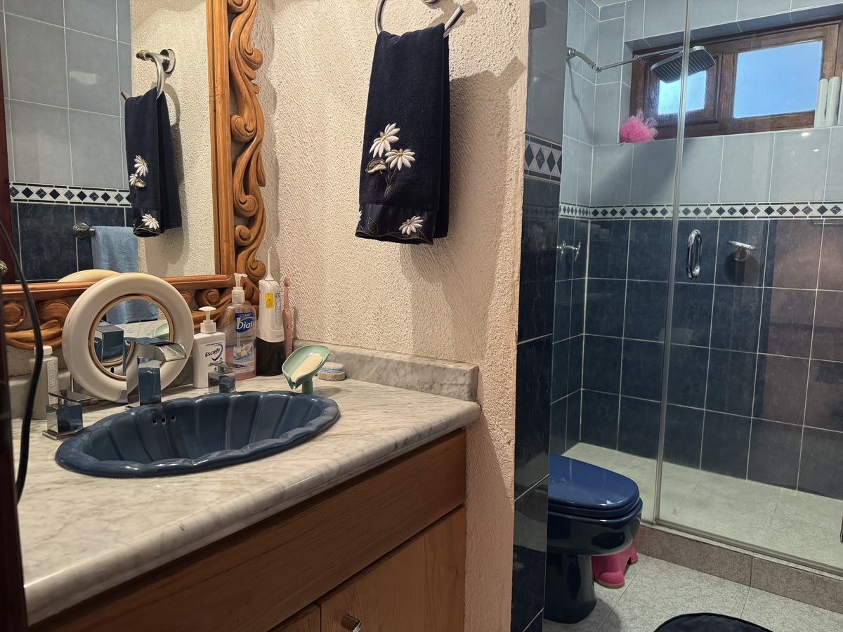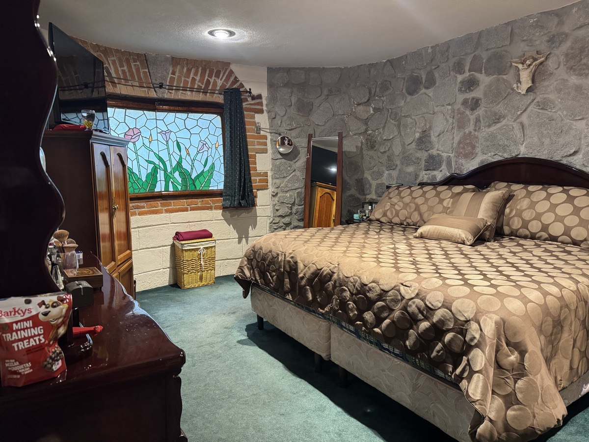 FOR SALE house in a condominium in Santa Rosa Xochiac, Cuajimalpa. With 664 m2 of land and 505 m2 of construction, on three levels as follows: the upper part of the house has a semi-open kitchen, a spacious dining room, and a bar with incredible views of the sunrise and sunset over Santa Fe, guest bathroom. On the next level, you will find a large living room, a bedroom with a closet, a full bathroom, and a reading space with a library. On the next level is the master bedroom with a jacuzzi, bathroom, and walk-in closet. Another secondary bedroom with a closet and bathroom.