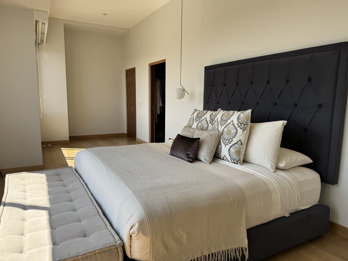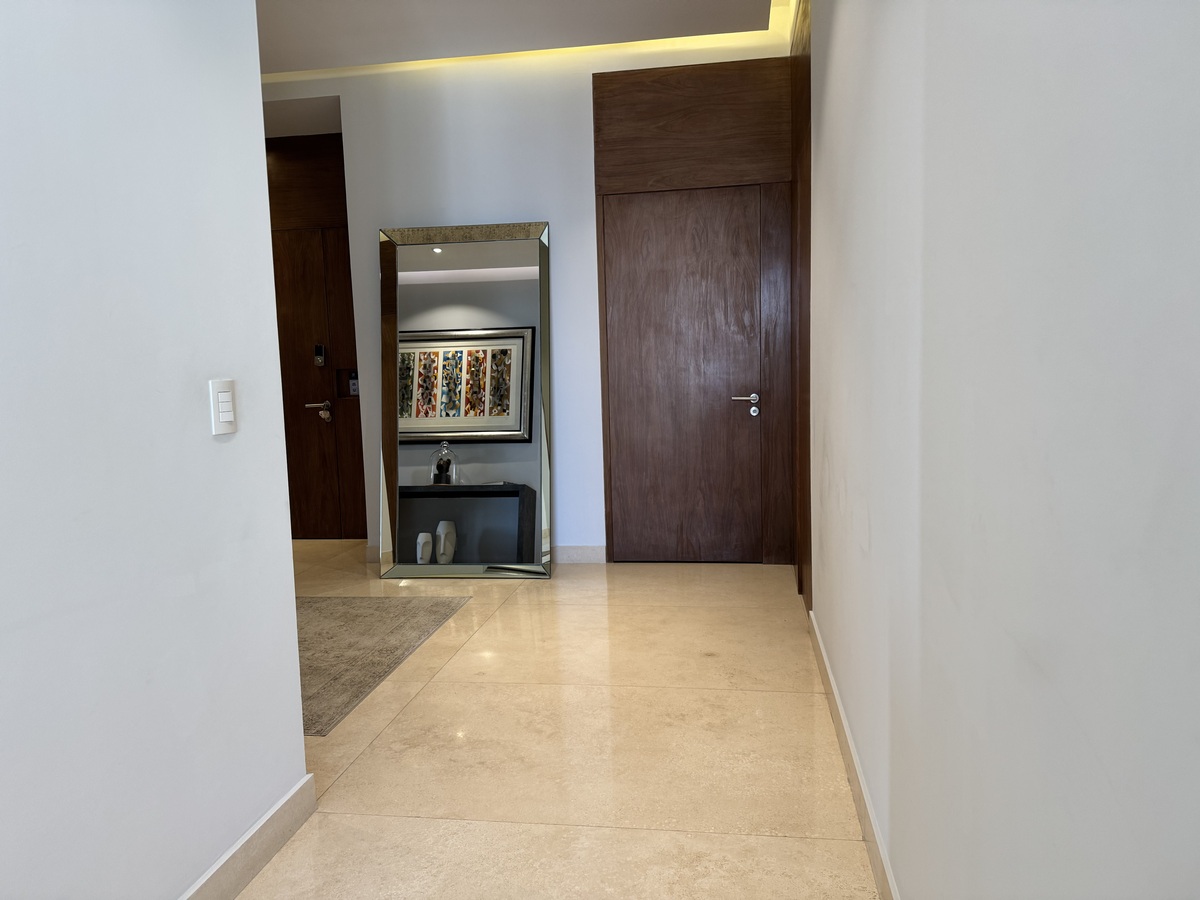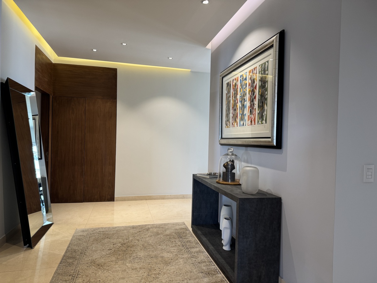 FOR SALE furnished apartment in Reserva Bosques, El Olivo. With 200 m2 well distributed, with direct elevator to the apartment. You enter a reception area, which divides the social area from the bedrooms. Living room, dining room with access to a balcony, guest bathroom, kitchen with a very good-sized pantry, laundry area, and service room with bathroom. Three bedrooms, the main one with a very large dressing room and bathroom, one secondary bedroom with dressing room and bathroom, the other secondary with closet and bathroom. Two parking spaces.