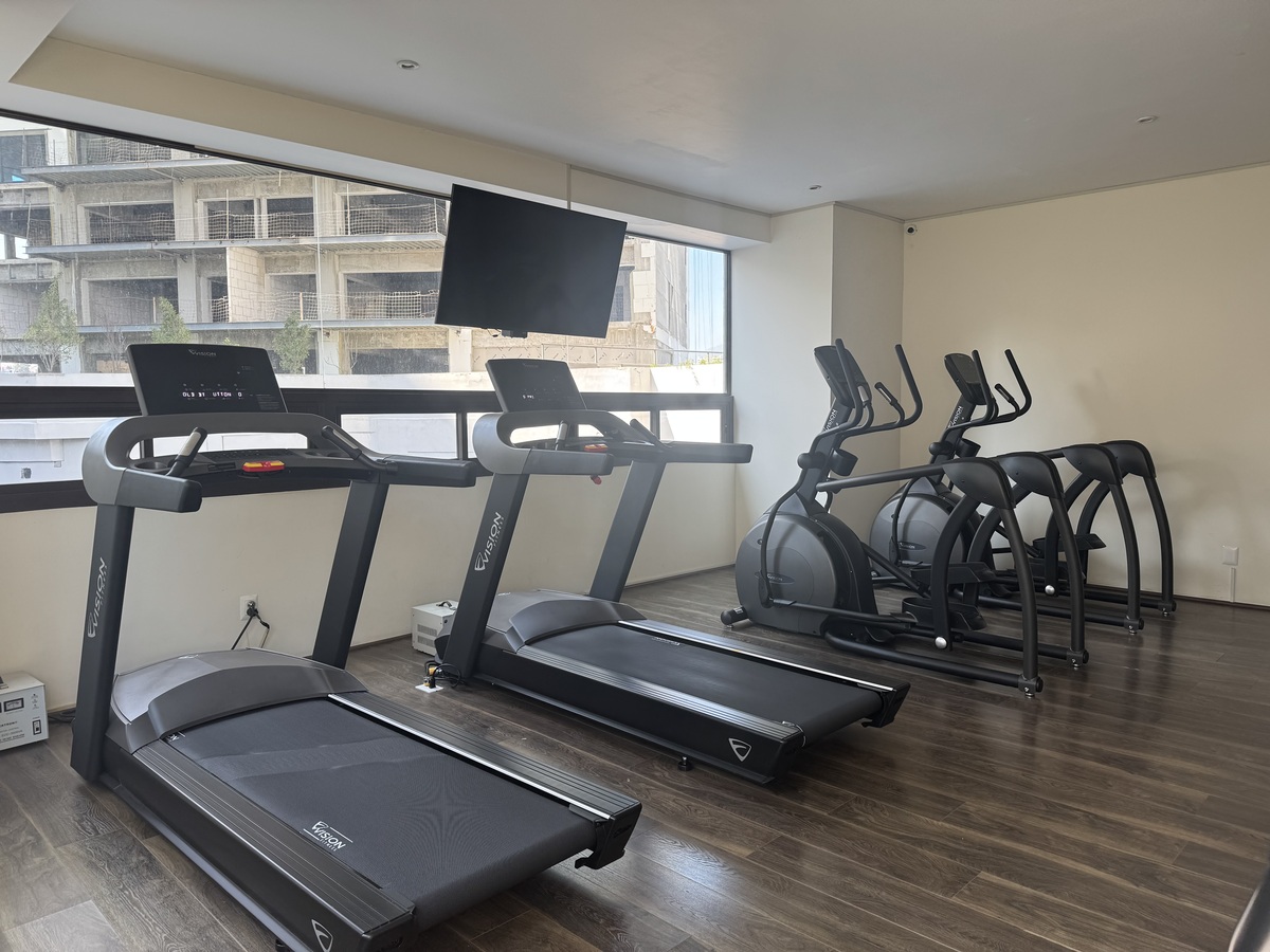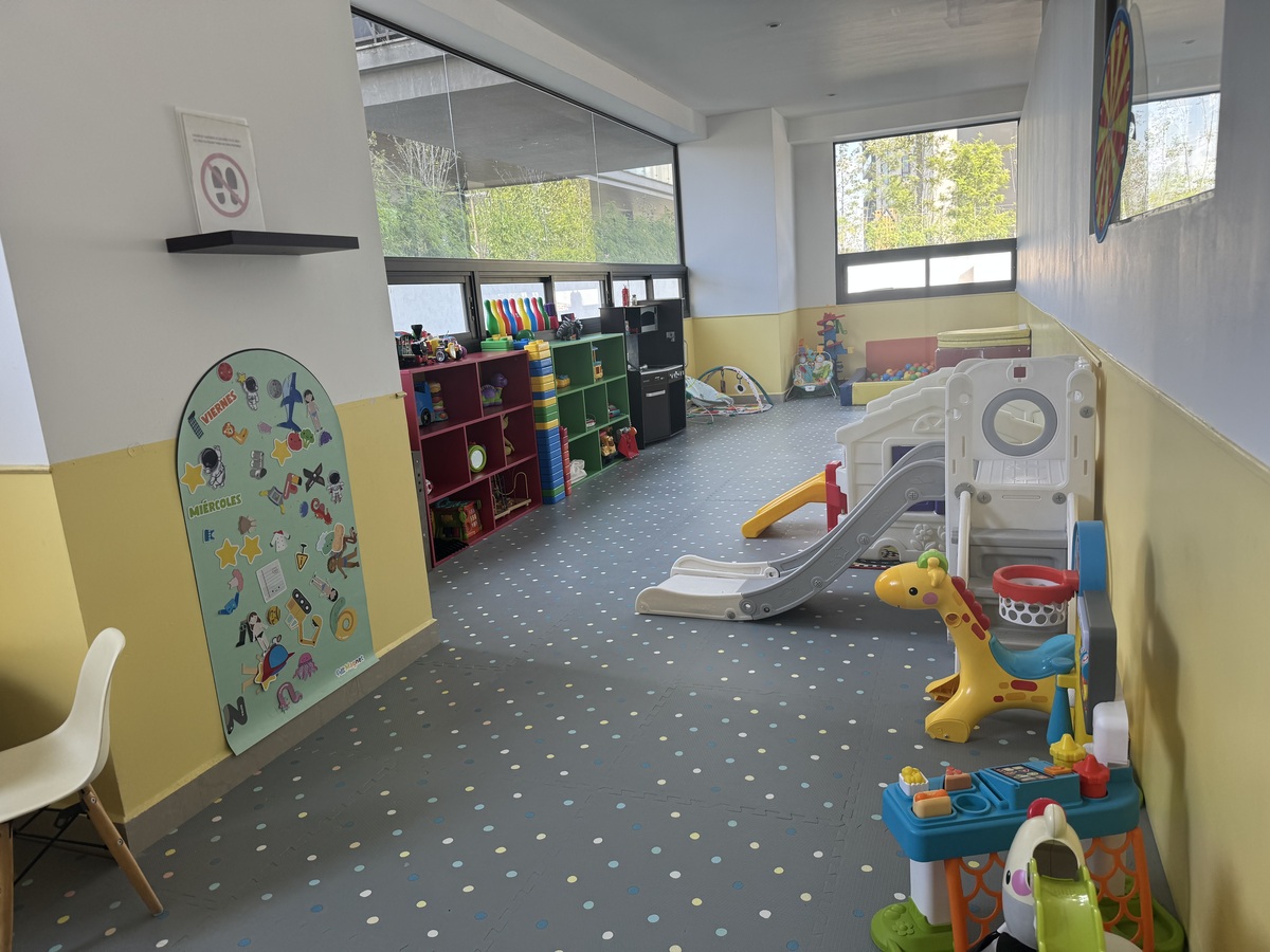 El edificio cuenta con gimnasio, ludoteca y salón de eventos.