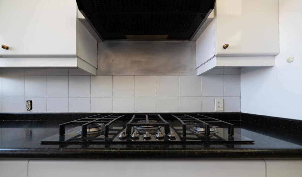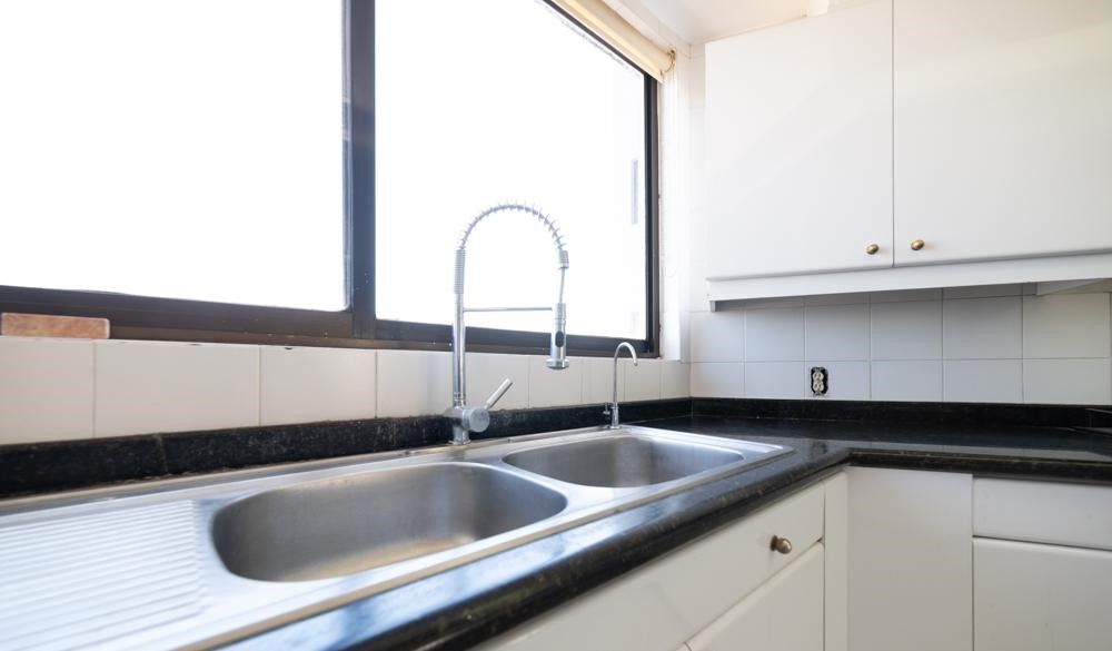 Cocina equipada (estufa 5 quemadores, horno, campana, tarja doble, barra central)