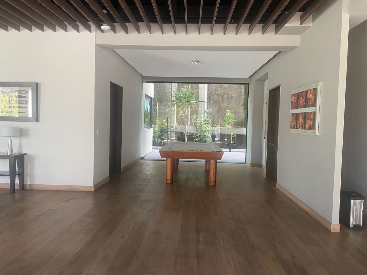 El edificio cuenta con las siguientes áreas comunes: salón de eventos con barra, cocina y salida a una terraza, jardín, gimnasio y alberca.