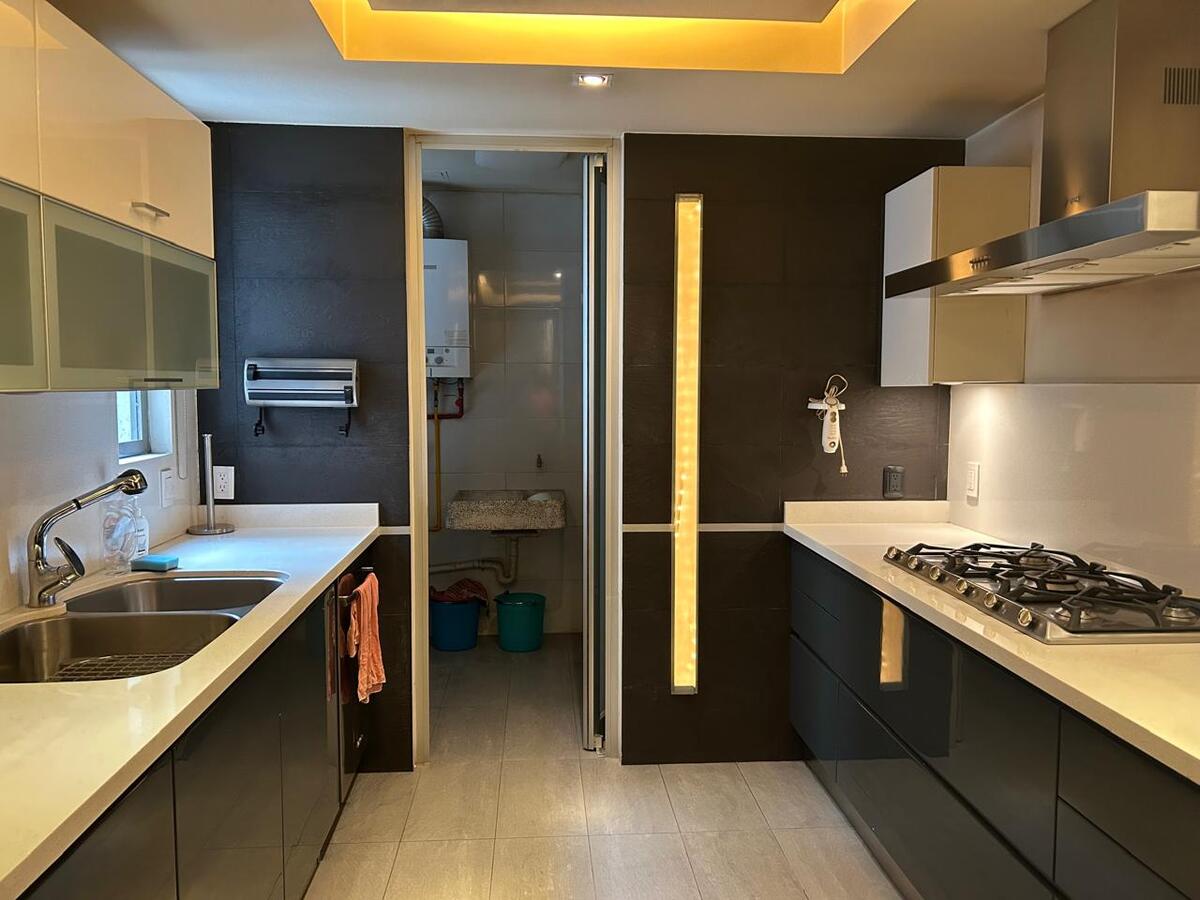 Cocina integral con área de lavado y cuarto de servicio con baño.
