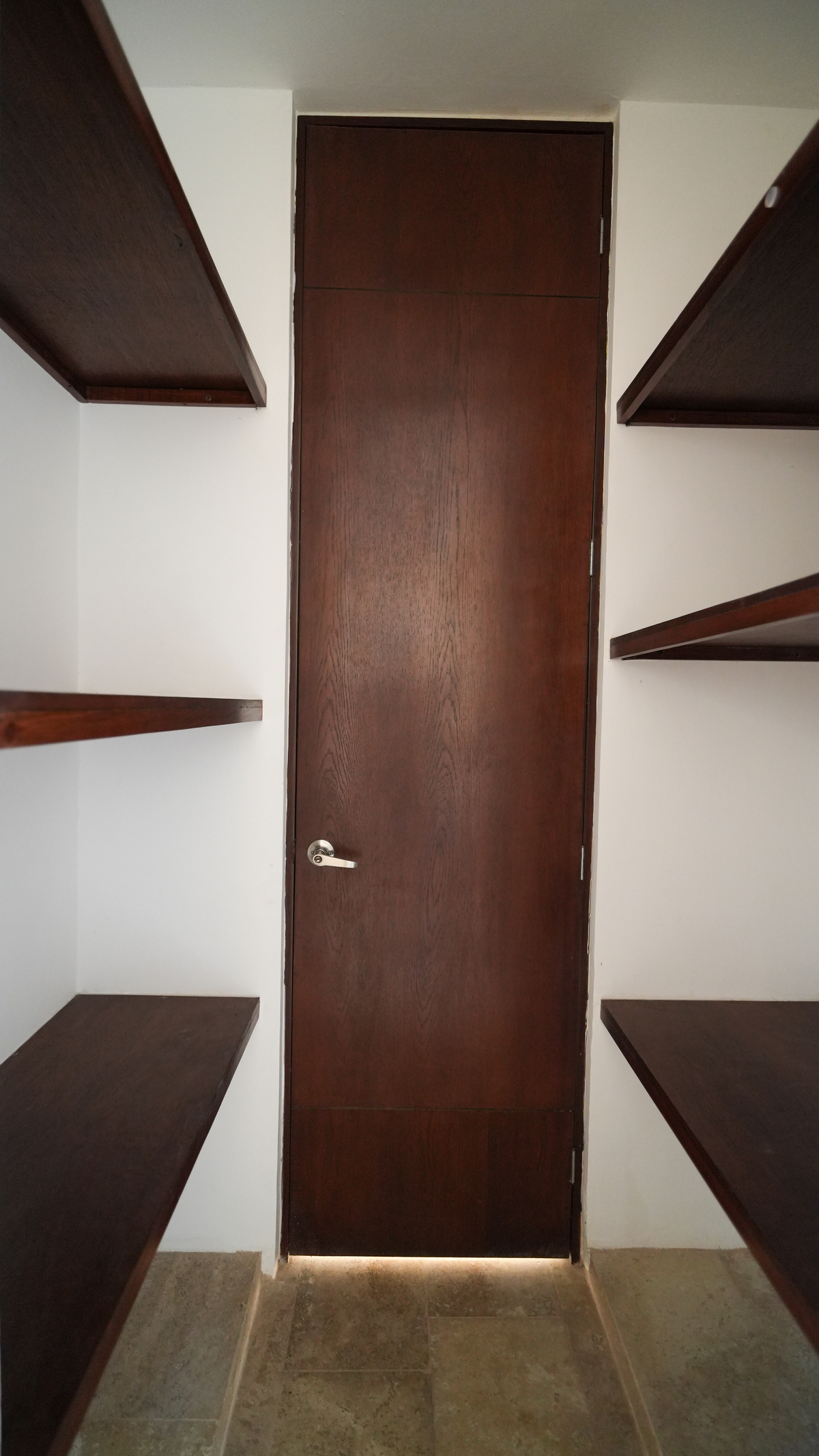 Escalera forrada de mármol, pared de doble altura en piedra natural