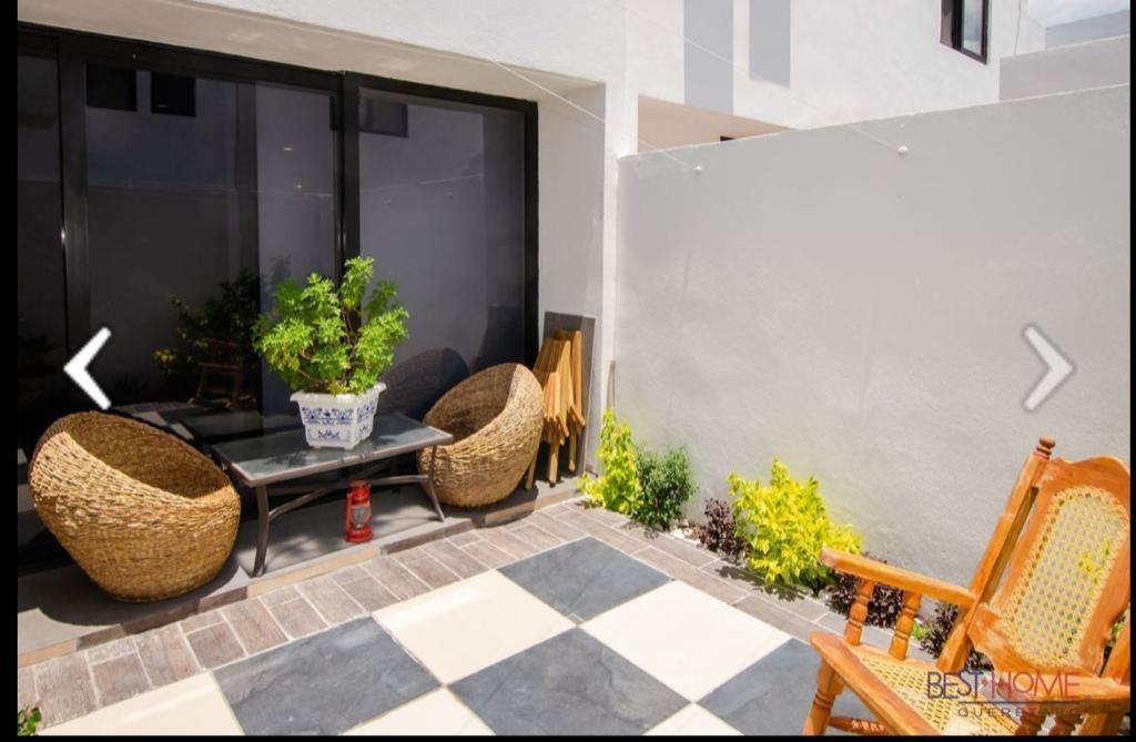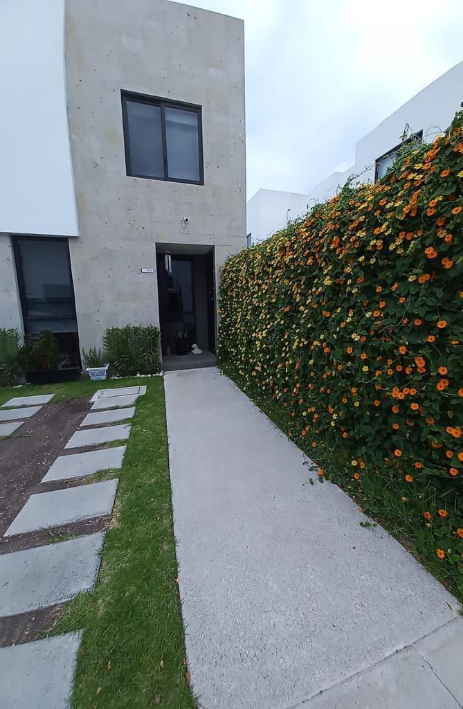 Venta de casa. Cuenta con tres recamaras. La recamara principal con baño y vestidor, las recamaras secundarias comparten baño, sala comedor separados, recibidor amplio, cocina con isla de granito, cuarto de lavado, patio trasero con cuarto de servicio con baño completo. Amplio roof garden con asador, bodega debajo de las escaleras, medio baño en planta baja. Estacionamiento para dos.