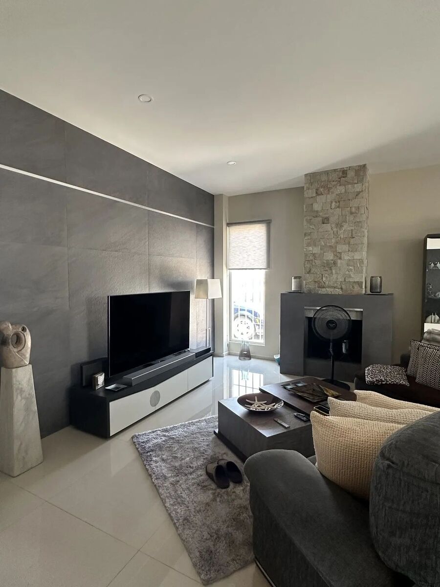 Si la quieres para invertir o para vivir en ella, te invito a que revises todos los detalles de diseño: muebles de marcas de prestigio, paredes con paneles 3D, cerámicas, texturas, tapetes, chimenea, lámparas, cortinas, espejos.