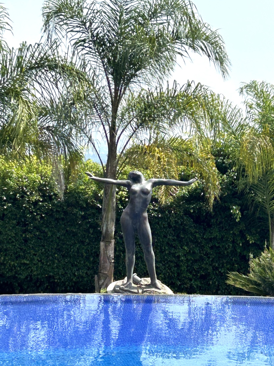 Alberca Infiniti ( 2 calentadores uno de gas y otro eléctrico) con una escultura hermosa del escultor Adolfo Octavio Ponzanelli