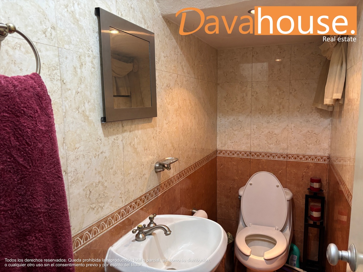 Distribución: Planta baja - cochera para 2 autos con portón, recibidor, medio baño, cocina, sala -comedor, lavandería, patio de tendido, cuarto de servicio con su baño, que puede ser adecuado para oficina, para los que trabajan de home-office, o incluso para oficios que ocupan visitas (psicólogos, contadores etc) dado que se pude acceder al espacio directamente desde la calle. Y lo que más te va a gustar es un amplio patio. Planta alta: estancia, 3 recámaras, la principal con baño-vestidor, las secundarias comparten baño y tienen closet de pared.