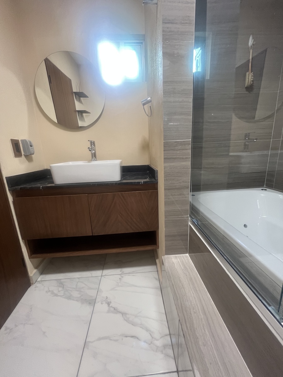 Primer piso: dos habitaciones con clóset cada una compartiendo baño y recámara principal con vestidor y baño con tina hidro masaje.