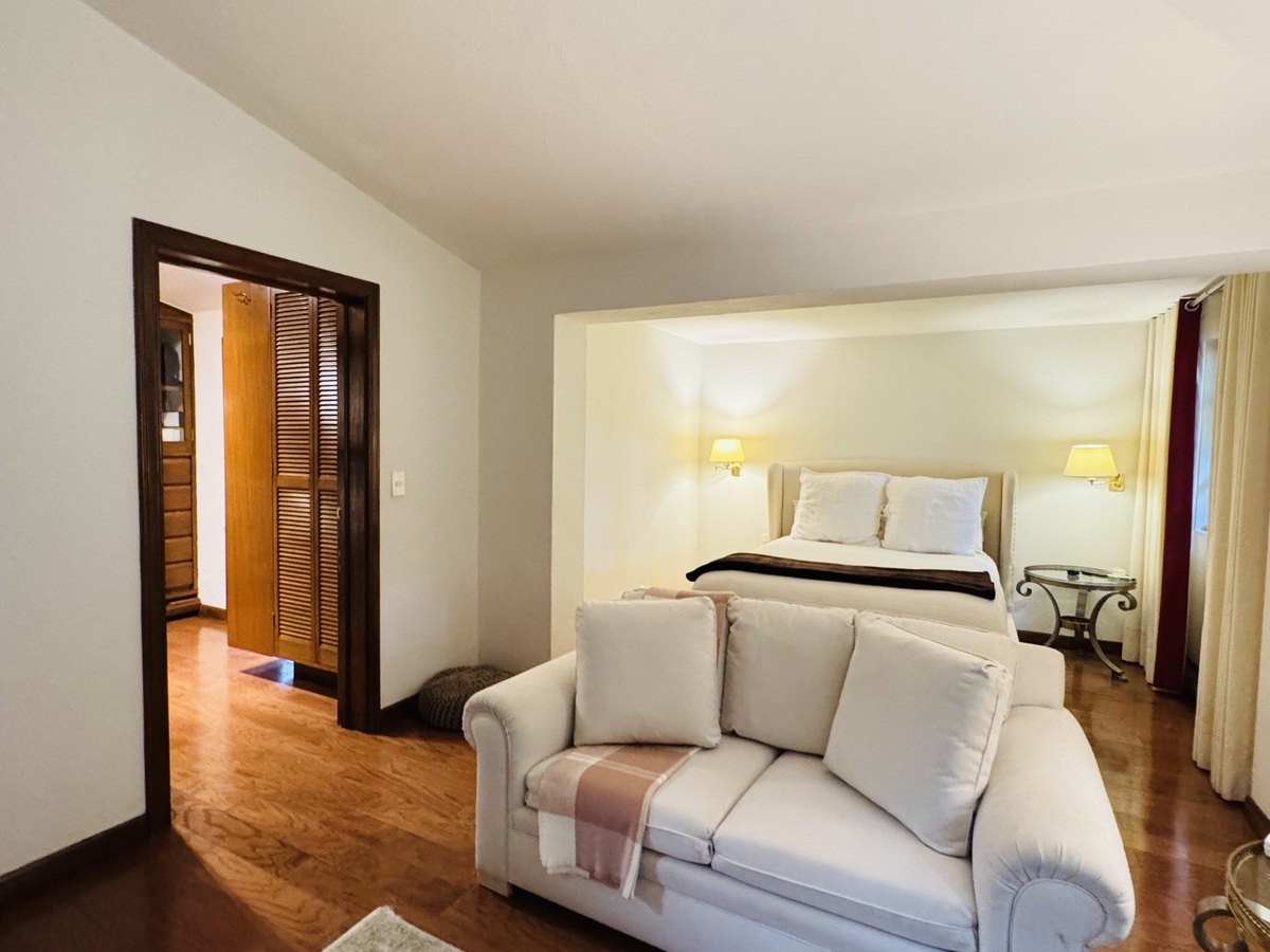It has 745m2 of construction and 1250m2 of land, which are distributed as follows: living room, dining room, kitchen with a large pantry that connects to the laundry and service area, the guest bathroom is complete to serve the pool, three spacious bedrooms, all with bathroom and dressing room, the main one has two bathrooms and two dressing rooms, multipurpose room that connects to the pool, which is covered and has a boiler system, a lovely central garden with a fountain and a small pergola for barbecues, storage room, 4 parking spaces. Cistern, gas heating, hydropneumatic system, sound system throughout the house, sauna, intercom, and security cameras.