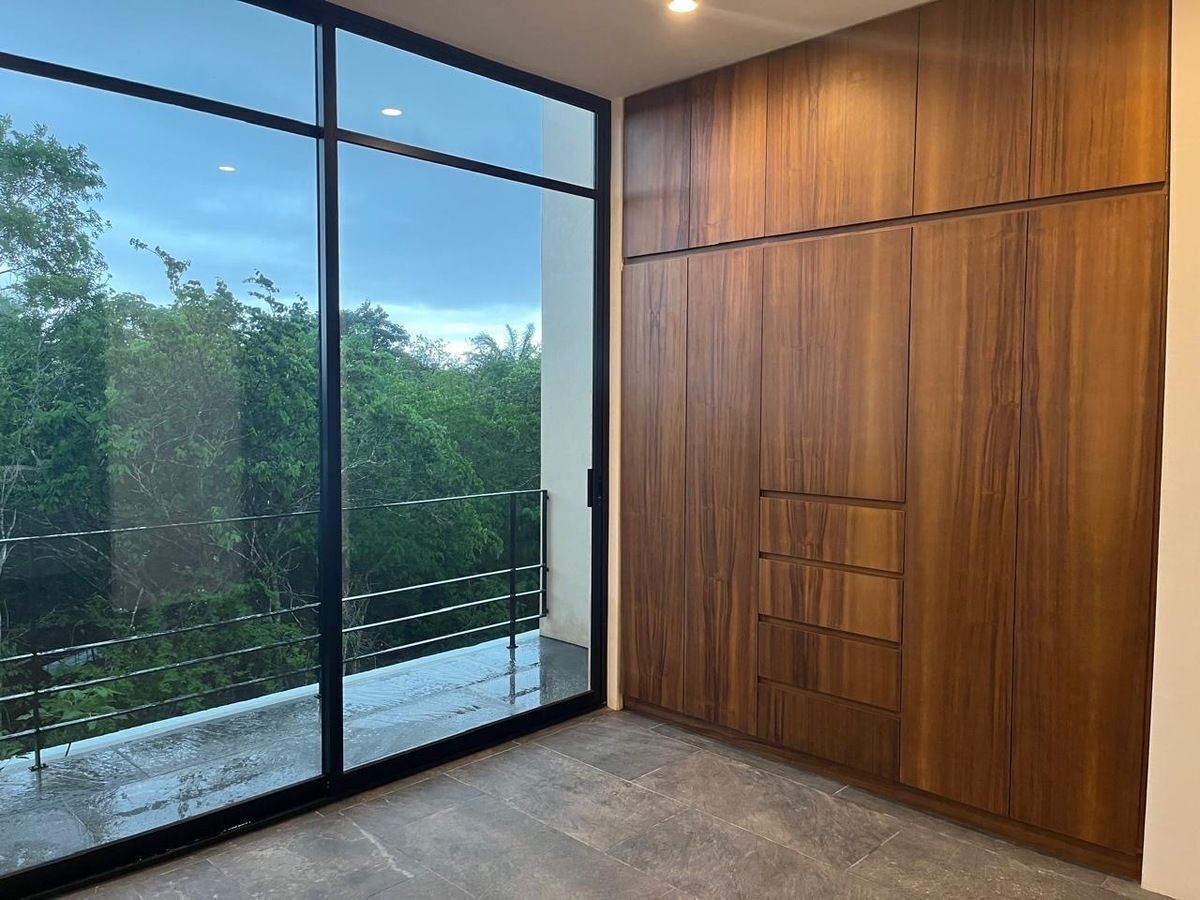 - Habitación secundaria con baño propio, closet de pared y balcón con vista al jardín.