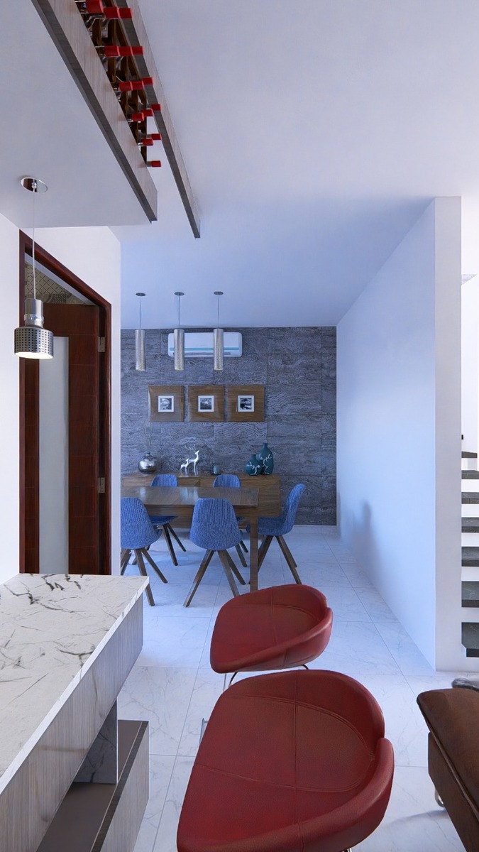 Cocina con barra de granito
