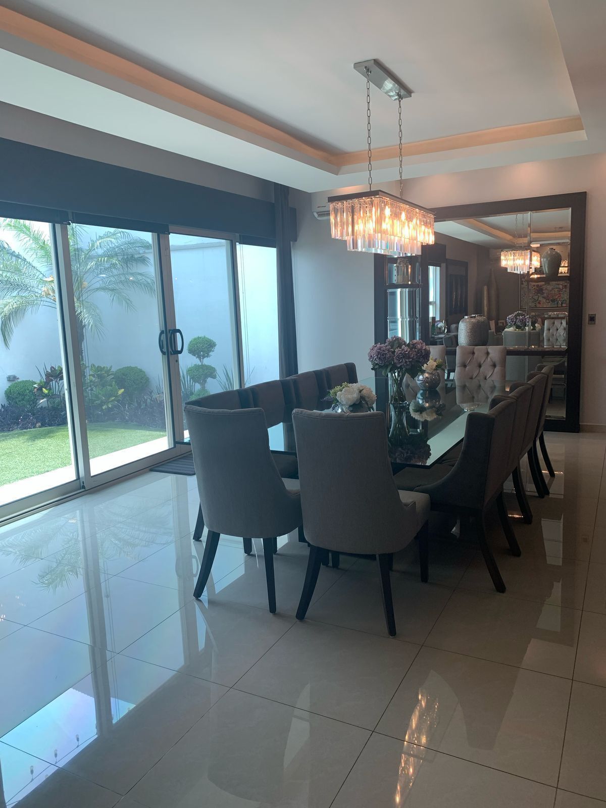 4 bedrooms each with a full bathroom and walk-in closet (1 bedroom on the ground floor), 4.5 bathrooms, garage for 3 cars, family room, integrated kitchen with social area, service room, laundry room on the upper floor/ Patio with covered grill and deck