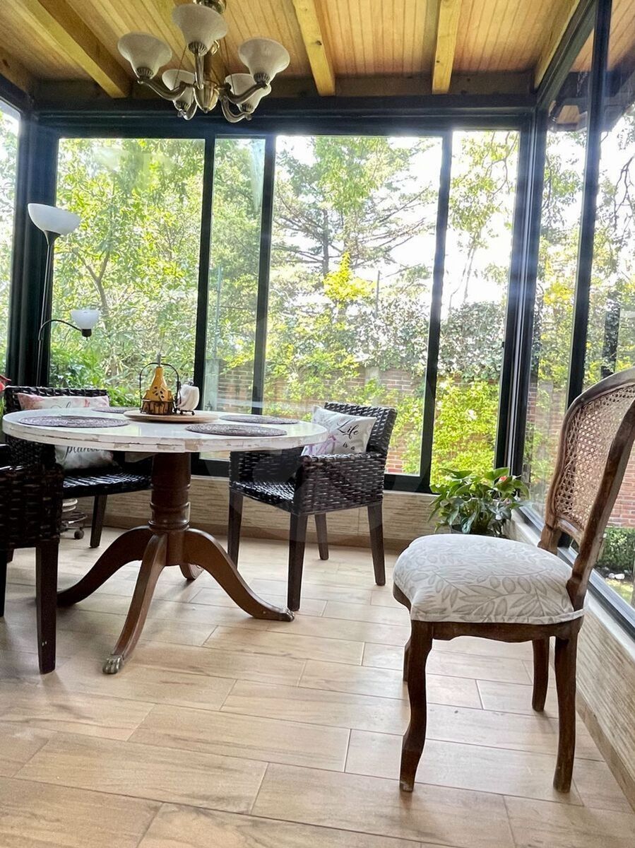 *Comedor con grandes ventanales con vista y salida al jardín.