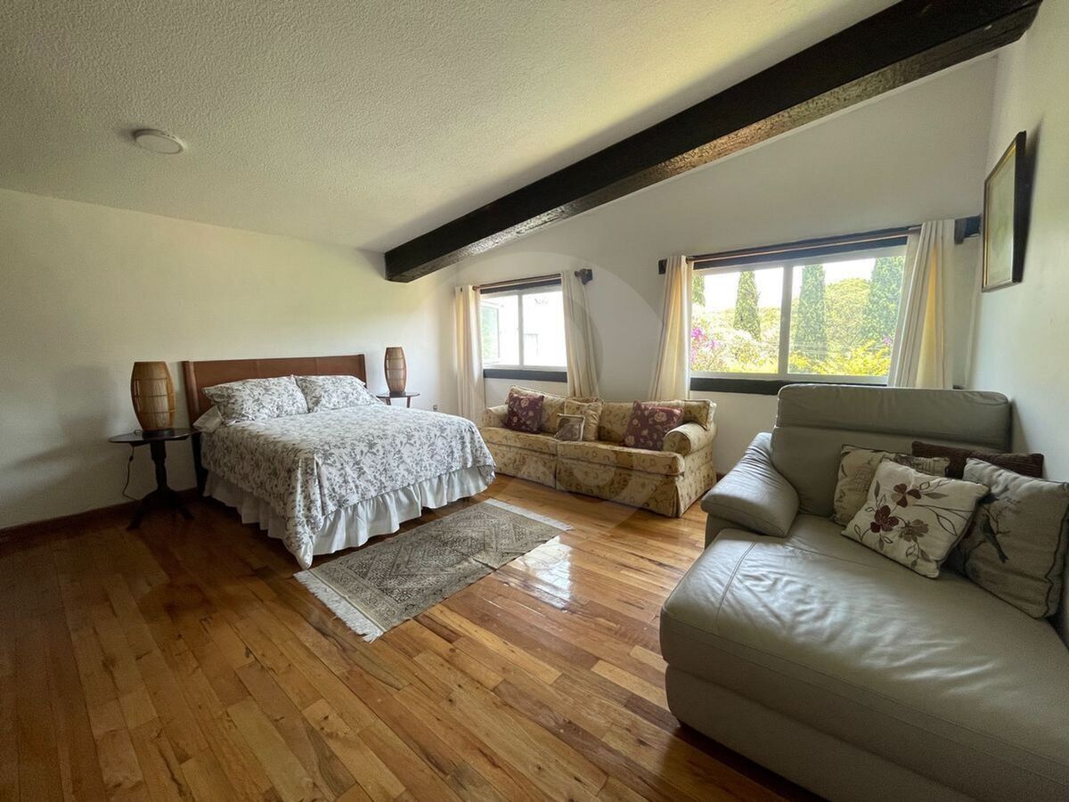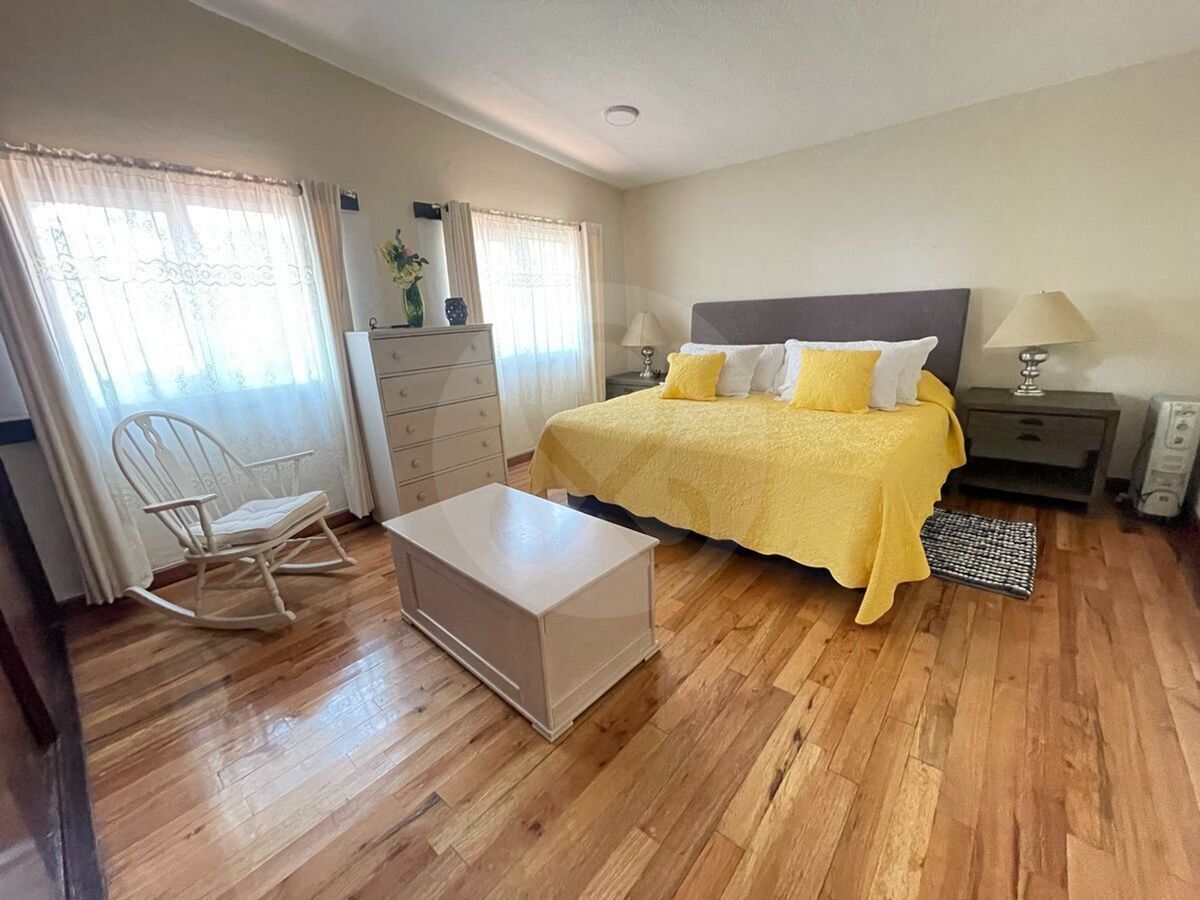La principal con baño completo con yacuzi, regadera y amplio vestidor. Y ubicadas en el siguiente desnivel, 3 recámaras secundarias, cada una de ellas con closet y una de ellas con terraza privada con hermosa vista a las montañas y jardín trasero de la casa. 2 baños completos compartidos que dan servicio a área social familiar y/o recámaras secundarias.