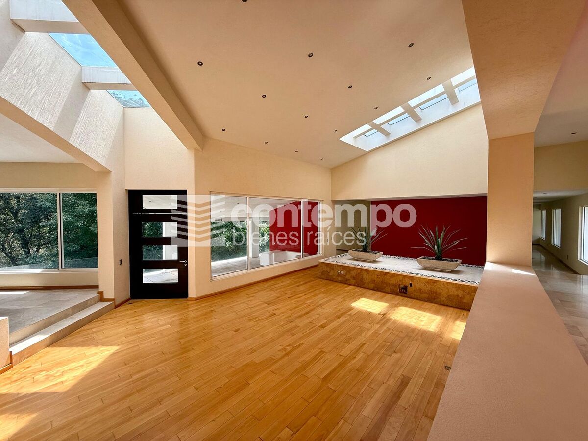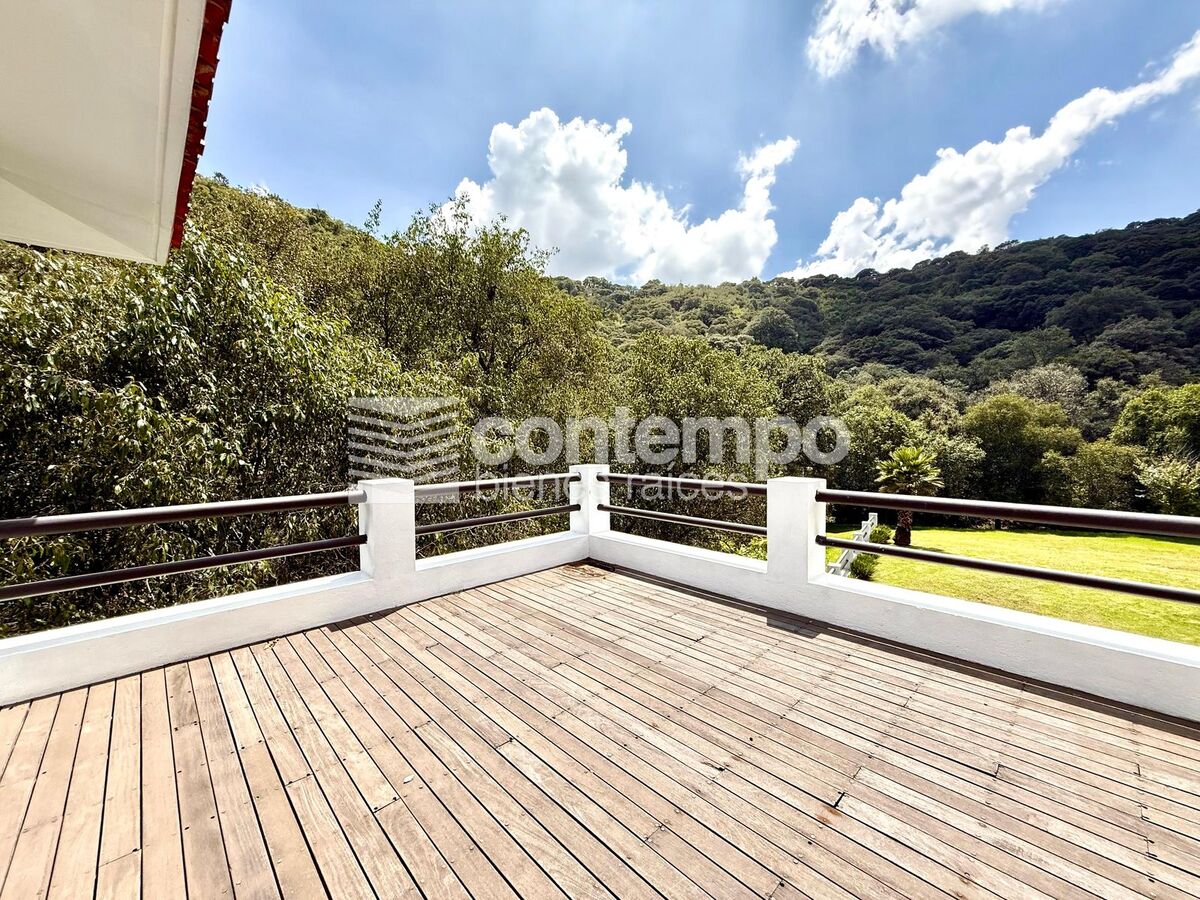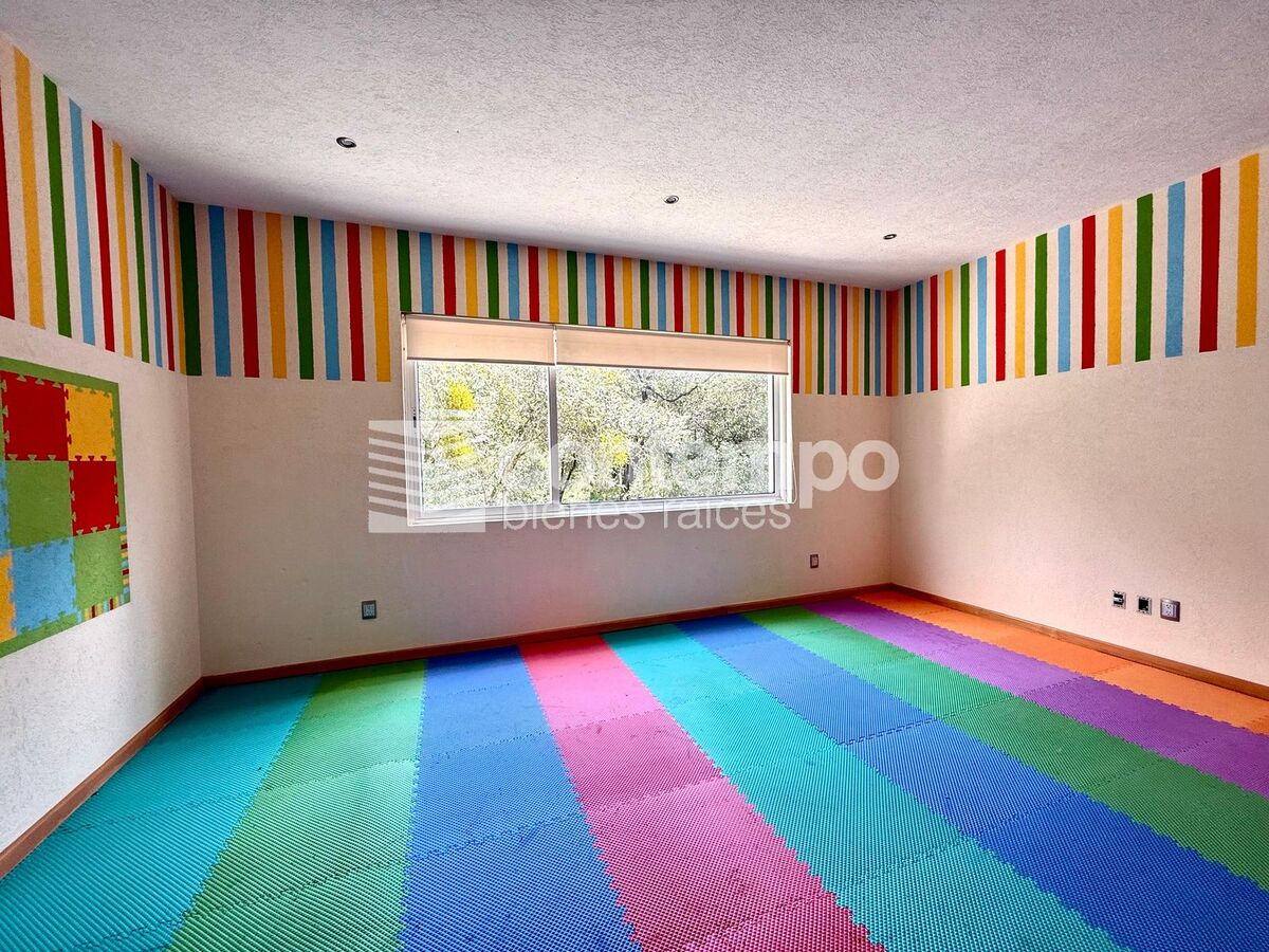 Dispone de cuatro recámaras de excelente tamaño, todas con vestidor y baño completo. La recámara principal incluye una sala de TV privada, terraza con vista al bosque, baño con jacuzzi y doble regadera.