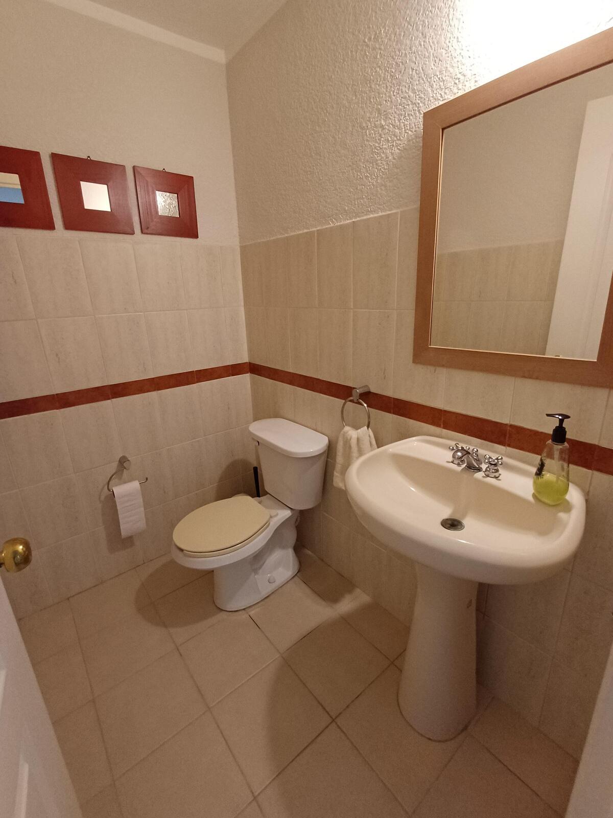 Tiene hall de entrada, medio baño de visitas, sala con vista al jardĂn y al campo de golf, comedor con un closet para guardar mantelerĂa, copas, etc., cocina equipada, antecomedor con vista al jardĂn.