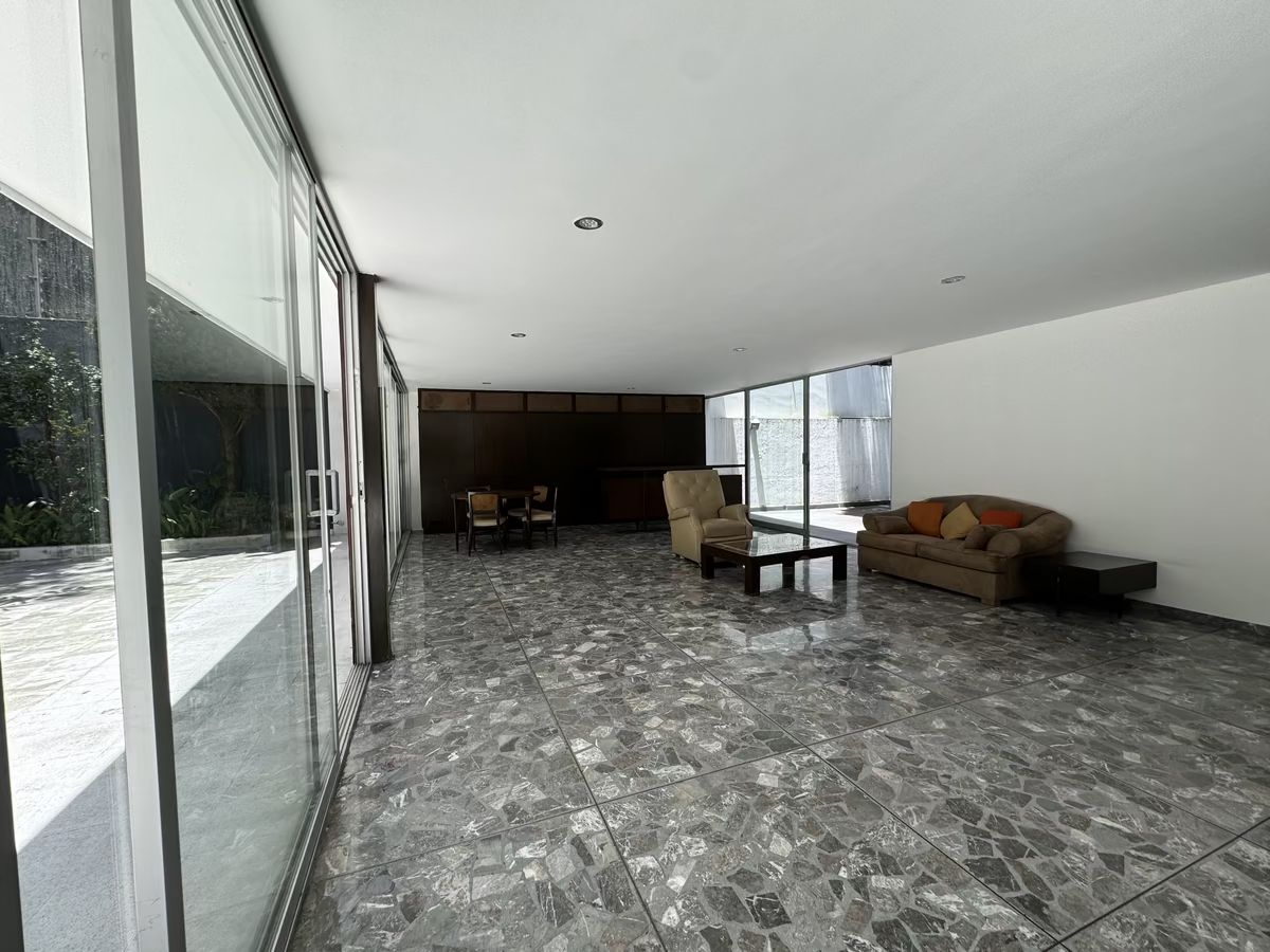 Casa de los años 70 con un excelente distribucion ya que tiene techos altos y ventanas de piso a techo donde entra una luz increible en toda la casa por su buena orientacion.