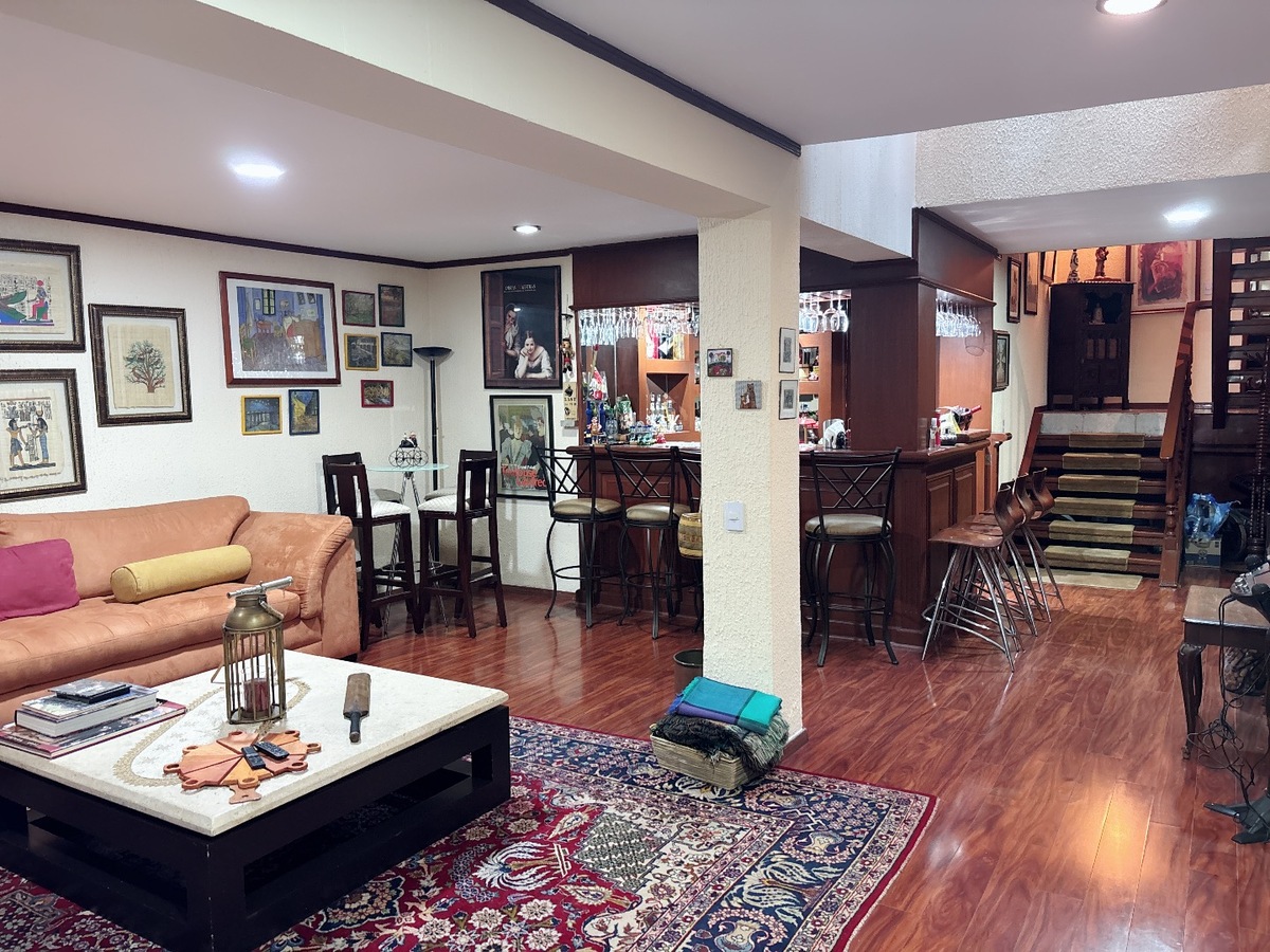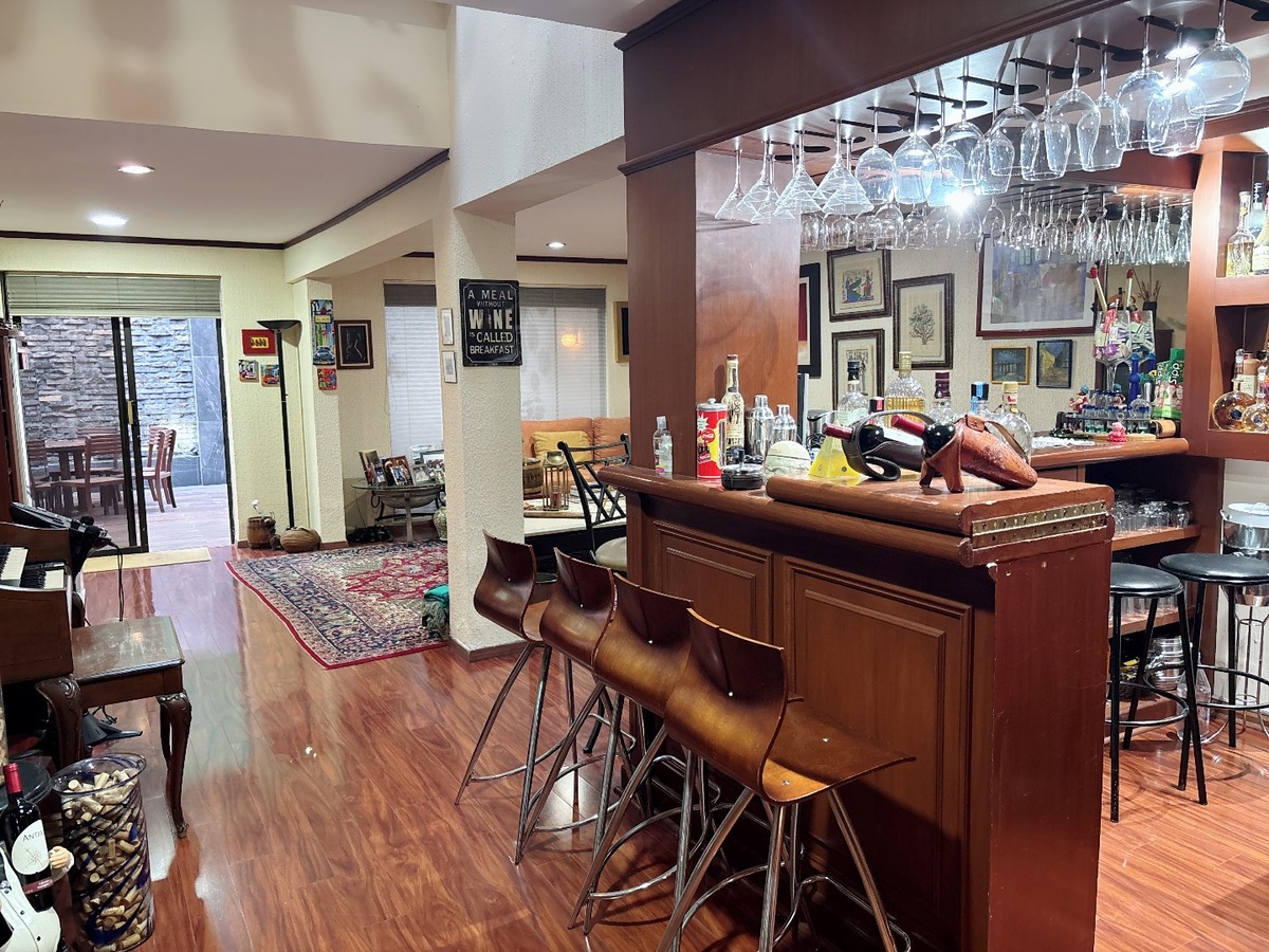 Casa 3 recamaras con baño completo y closet, principal con tina, hall entre habitaciones, sala - comedor, cocina equipada, área desayunador, estudio con salida a jardín frontal, área de juegos con bar y salida a terraza con asador y muro llorón, estacionamiento 2 autos, cuarto de servicio con baño completo.