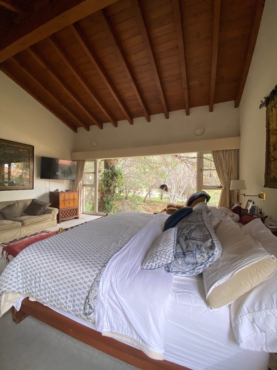 En la planta alta, encontrará un acogedor estar de TV o distribuidor, junto con 2 recámaras secundarias, cada una con su propio vestidor y baño completo. La impresionante recámara principal no solo ofrece amplitud y confort, sino también una vista privilegiada hacia la cañada, gracias a sus ventanales de piso a techo.