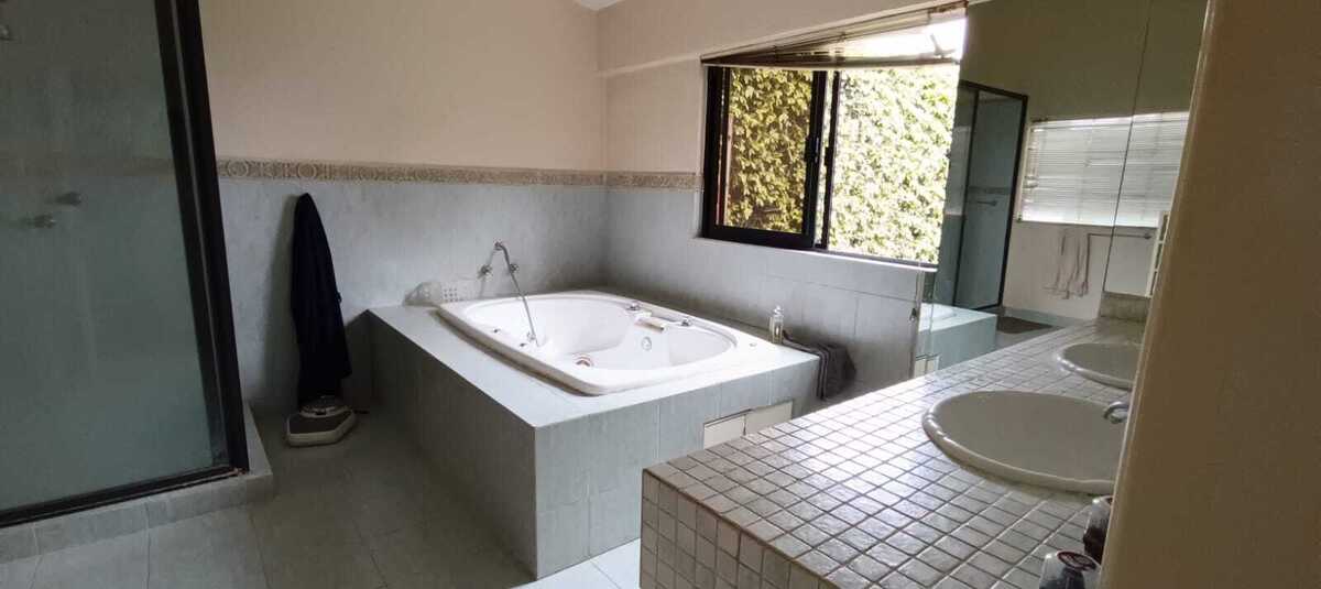 It consists of: Four bedrooms with closet and dressing room, Four bathrooms, one of them with a hydromassage tub, one half bathroom, a spacious and bright living room with a view of the garden, dining room, integral kitchen with breakfast area, study, library, television area, terrace, service room with bathroom, storage room, parking for five cars, a large and beautiful garden of approximately 200 m², and a cistern with significant water storage capacity.