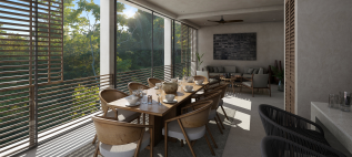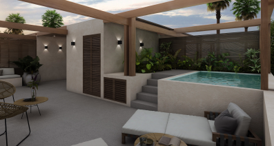 The most exquisite life experience in the jungle of Tulum emerges to celebrate harmonious connections worldwide, apartments where a modern aspect is combined with natural elements to create a sense of discreet luxury in each of its 18 spacious apartments. Here you can enjoy sunsets from your private pool, marvel at the Tulum night sky from the terrace, or simply get lost in the comfort of your secluded retreat. Garden Floor Located on the ground floor, From 140m2, 2 to 3 bedrooms, 2 full bathrooms, Fully furnished and equipped, Home automation technology, Terrace and Private pool. *Prices and availability subject to change without prior notice.La mas exquisita experiencia de vida en la selva de Tulum surge para celebrar las conexiones armoniosas en todo el mundo, apartamentos dónde se combina un aspecto moderno con elementos naturales para crear una sensación de lujo discreto en cada uno de sus 18 espaciosos departamentos. Aquí puedes disfrutar de los atardeceres desde tu alberca privada maravillarte con el cielo nocturno de Tulum desde la Terraza o simplemente perderte en la comodidad de tu apartado refugio. Garden Floor