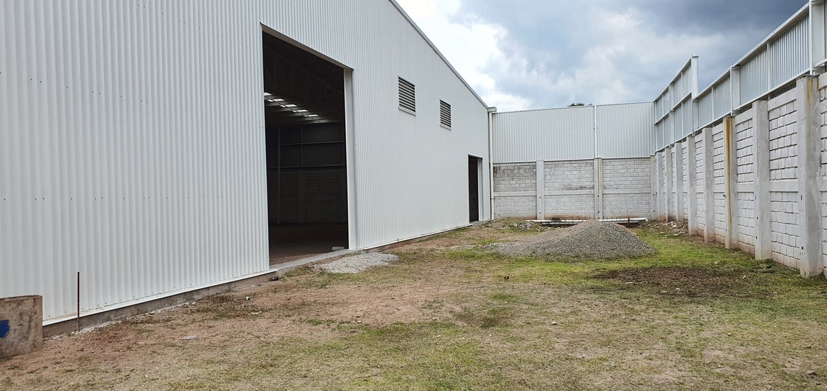Área cubierta 1,350 m² con columnas y estructura de acero, cubierta a dos aguas con 2 pulgadas de aislante.